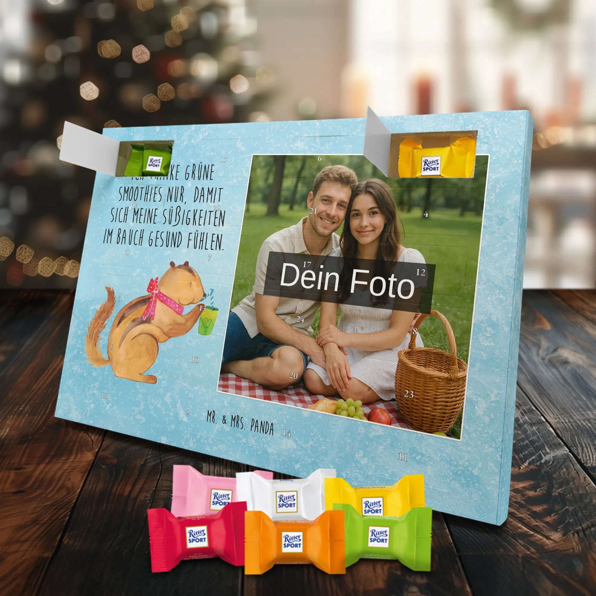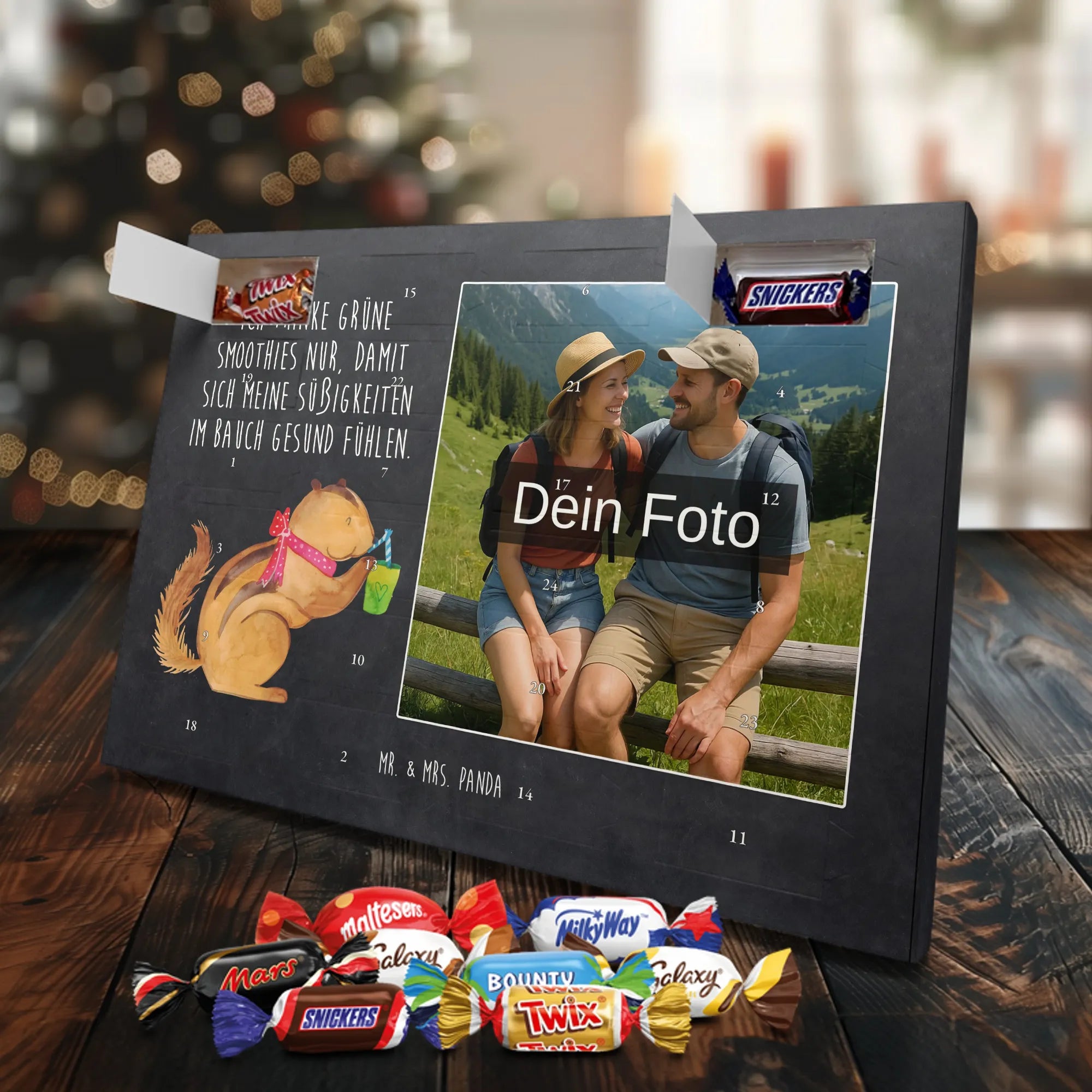 Verschenke Vorfreude: Gestalte jetzt deinen personalisierten Schoko Foto Adventskalender und überrasche mit süßen, persönlichen Momenten von Mr. & Mrs. Panda.