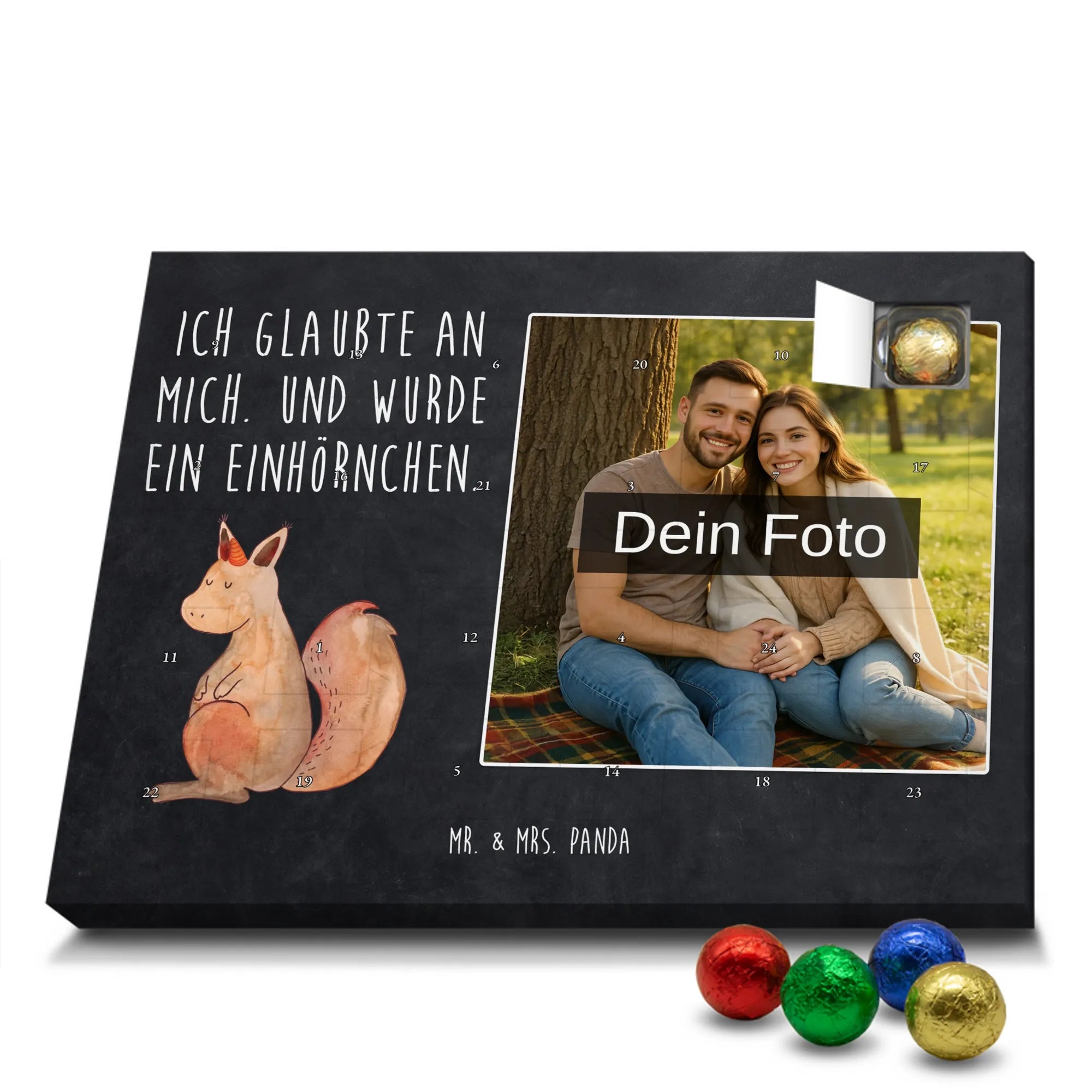 Verschenke Vorfreude: Gestalte jetzt deinen personalisierten Schoko Foto Adventskalender und überrasche mit süßen, persönlichen Momenten von Mr. & Mrs. Panda.