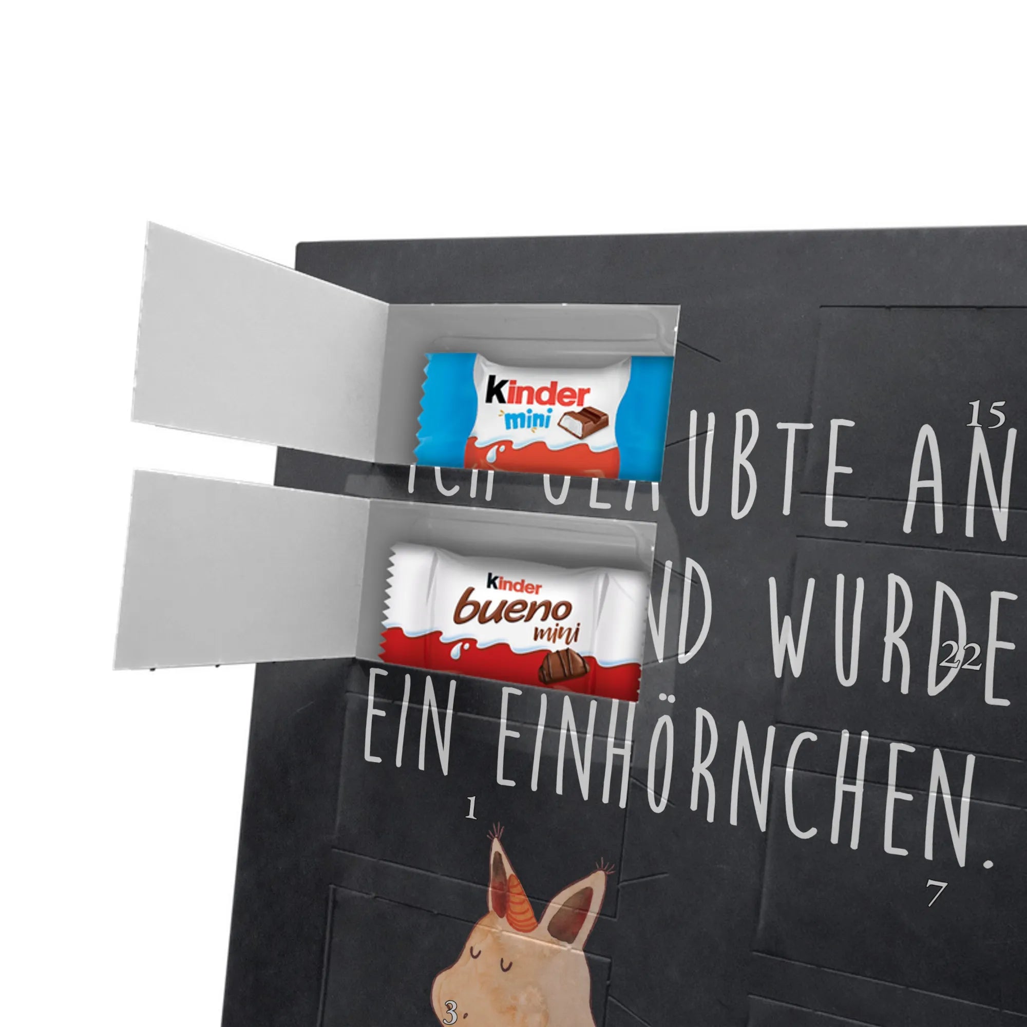 Dieser wunderschöne Adventskalender ist weit mehr als nur eine Nascherei für die 24 Tage bis zum Fest. Er ist eine tägliche Umarmung für die Seele und ein Zeugnis deiner wertvollsten Erinnerungen. Das Herzstück dieses Kalenders ist das zauberhafte Motiv Einhörnchen Glaube aus unserer beliebten Einhorn-Kollektion. Es zeigt ein niedliches Eichhörnchen, das so fest an sich geglaubt hat, dass ihm ein glitzerndes Einhorn-Horn gewachsen ist. Begleitet wird das handgezeichnete Aquarell-Motiv von dem inspirierenden Spruch: "Ich glaubte an mich. Und wurde ein Einhörnchen." 🦄🐿️