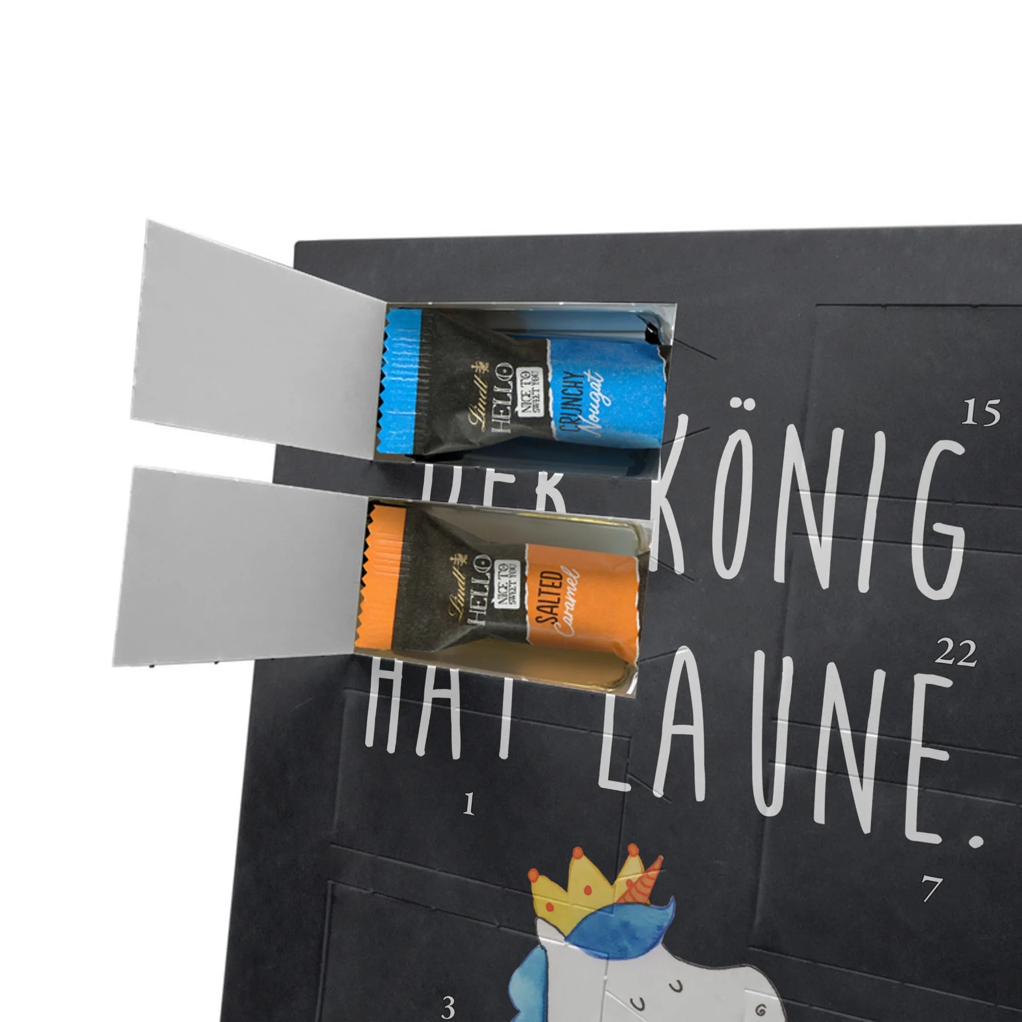 Mach die Adventszeit besonders persönlich mit unserem Foto Adventskalender mit Schokolade von Mr. & Mrs. Panda. Jeder Kalender ist mit niedlichen Motiven und herzlichen Sprüchen versehen, die perfekt zu einem individuellen Foto passen. Lade ein klares, hochauflösendes Bild hoch und überprüfe den Bildausschnitt, damit nichts Wichtiges abgeschnitten wird. Beachte bitte die Bildrechte – nur eigene Fotos oder solche mit Genehmigung verwenden. Die seidenmatte Oberflächenveredelung und der vollflächig bedruckte Look inklusive bedruckter Seitenflächen machen den Kalender zu einem Hingucker. Maße: 325 mm x 225 mm x 27 mm. Du erhältst 24 einzeln verpackte Schokoladen Mini Sticks in vier leckeren Geschmacksrichtungen: Karamell-Schokoladenkuchen, Kekse, Knuspriger Nougat und Erdbeer-Cheesecake. Gefüllt mit Lindt Hello Schokolade. Allergene: Milcheiweiß, Milchzucker, Soja, Weizen, Haselnüsse; kann Mandeln und weitere Schalenfrüchte enthalten. Besonderheit: Der Kalender kann aufgehängt oder aufgestellt werden. Hinweis: Fotos werden weder nachbearbeitet noch zugeschnitten – personalisierte Foto-Artikel sind vom Rückgaberecht ausgeschlossen. Verschenke süße Erinnerungen mit deinem eigenen Foto.