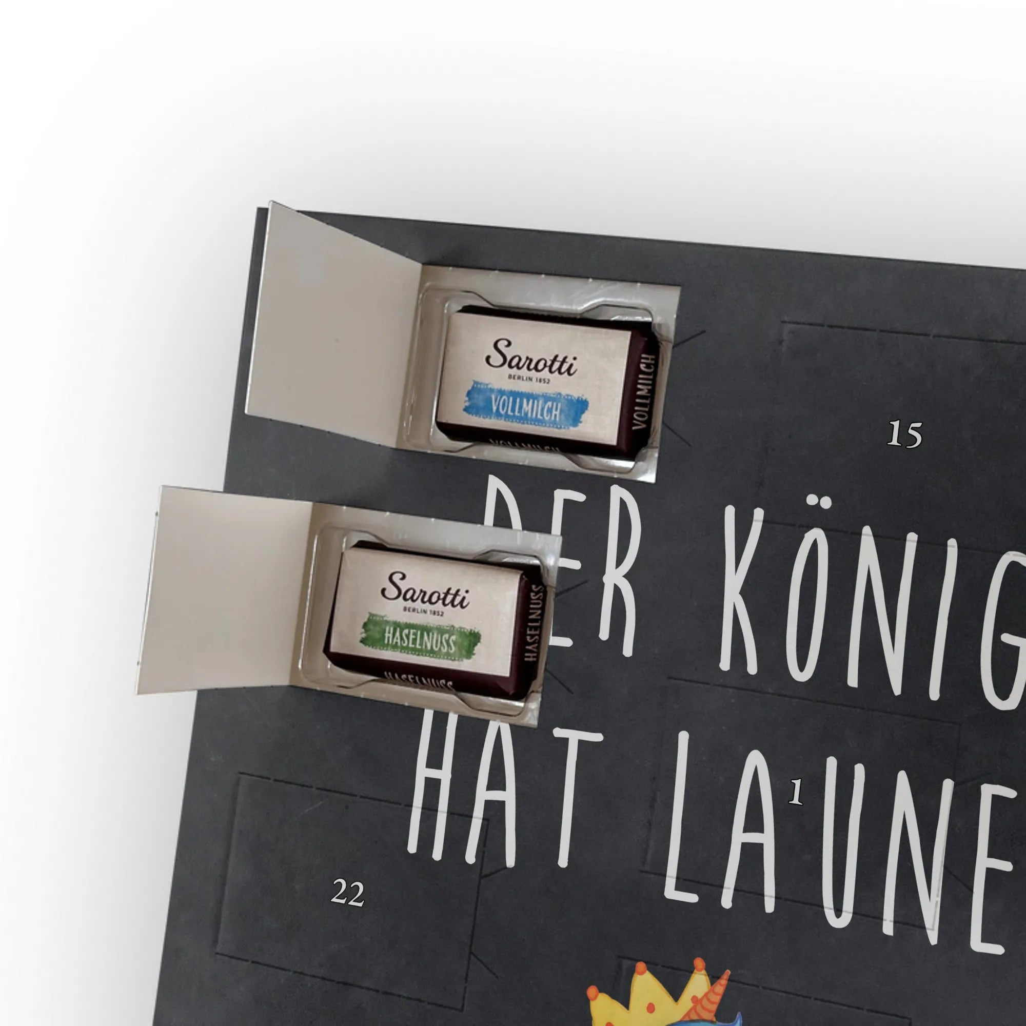 Personalisierter Schoko-Adventskalender mit Foto – das kleine Weihnachtswunder von Mr. & Mrs. Panda! Verschenke jeden Tag Vorfreude: Der Kalender ist liebevoll gestaltet mit unseren herzlichen Illustrationen und Sprüchen, während dein Foto die persönliche Mitte bildet. Bitte lade ein hochauflösendes Foto hoch und prüfe den Bildausschnitt, damit nichts Wichtiges verloren geht. Nutze nur Bilder, für die du die Rechte hast. Die hochwertige, seidenmatte Veredelung und die bedruckten Seitenflächen garantieren ein edles Erscheinungsbild. Maße: 355 mm x 245 mm x 11 mm; lässt sich sowohl aufhängen als auch aufstellen. Achtung: Fotos werden nicht nachbearbeitet oder zugeschnitten; personalisierte Artikel sind vom Rückgaberecht ausgeschlossen. Gefüllt mit 24 einzeln verpackten Schokoladentäfelchen aus den vier Geschmacksrichtungen Vollmilch, Nougat, Zartbitter und Haselnuss – von Sarotti® und Confiserie Heidel®. Insgesamt enthält der Kalender 107 g Markenschokolade. Ein persönliches Geschenk mit süßem Inhalt, ideal für Partner, Familie und Freunde, verpackt mit der typischen Mr. & Mrs. Panda Liebe zum Detail.