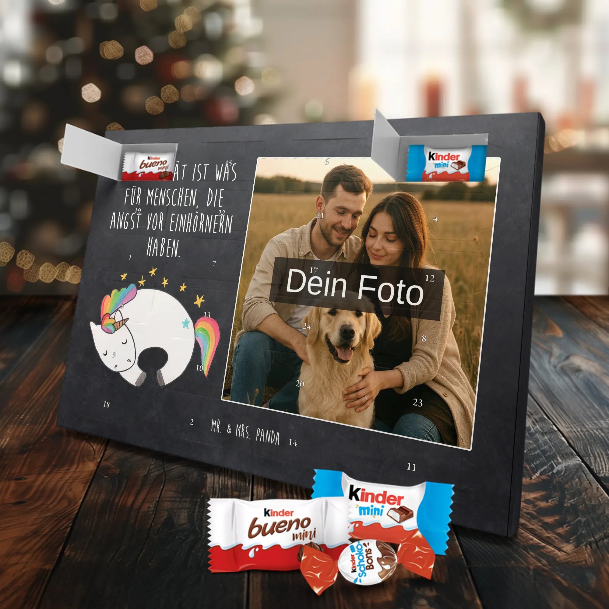 🐼 Personalisierter Schoko-Foto-Adventskalender mit deinem Bild, Mr. & Mrs. Panda Motiven und gefüllt mit kinder® Schokolade.