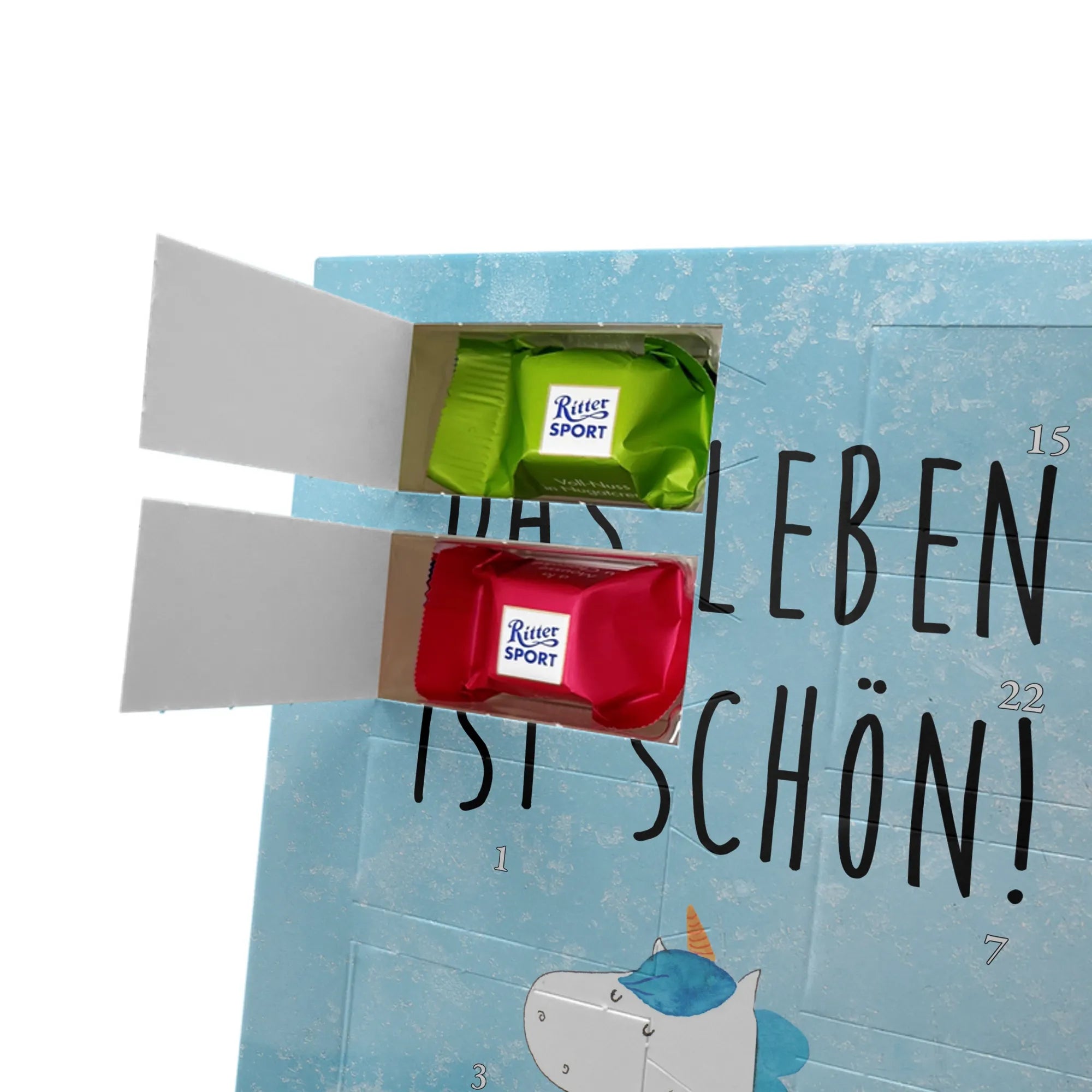 Foto Adventskalender Einhorn Spaziergang - Kinder Schokolade - Eisblau
