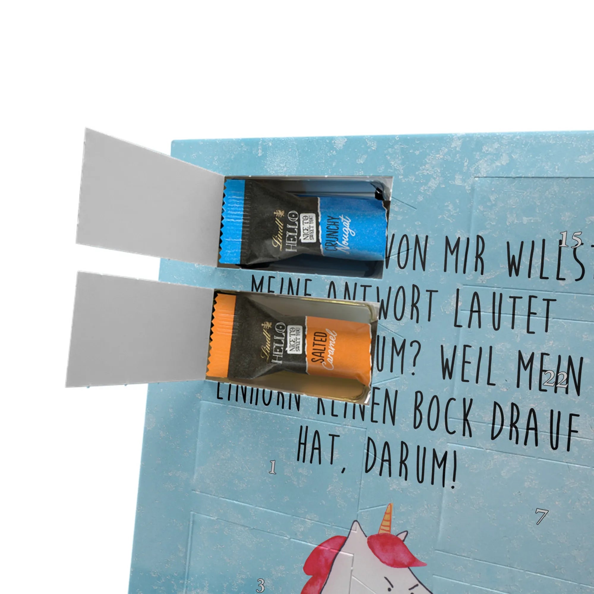 Personalisierter Schoko Foto Adventskalender Einhorn Wut - Lindt LINDOR - Eisblau