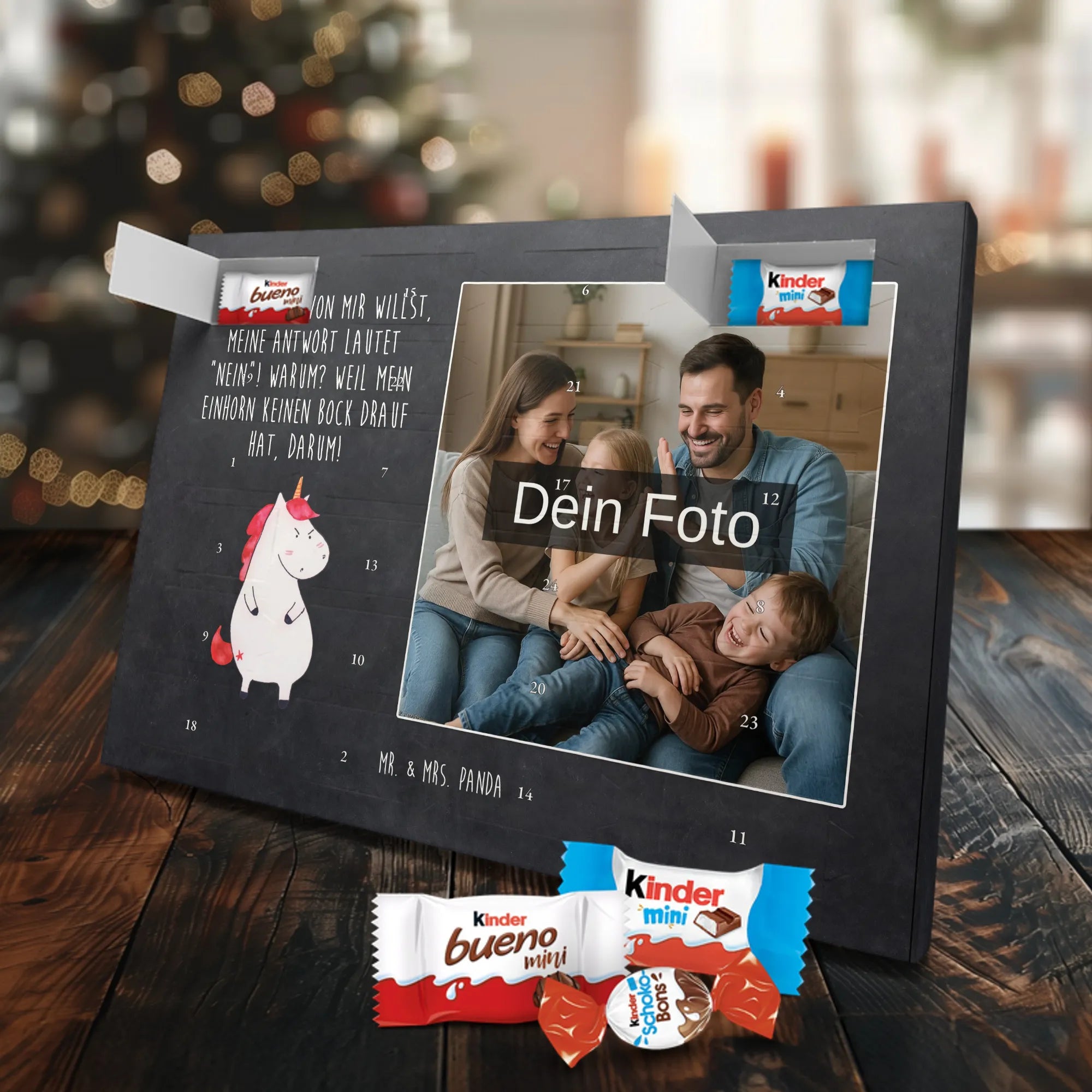 🐼 Personalisierter Schoko Foto Adventskalender mit deinem Foto, seidenmatter Druck, bedruckten Motiven & gefüllt mit kinder® Schokolade.