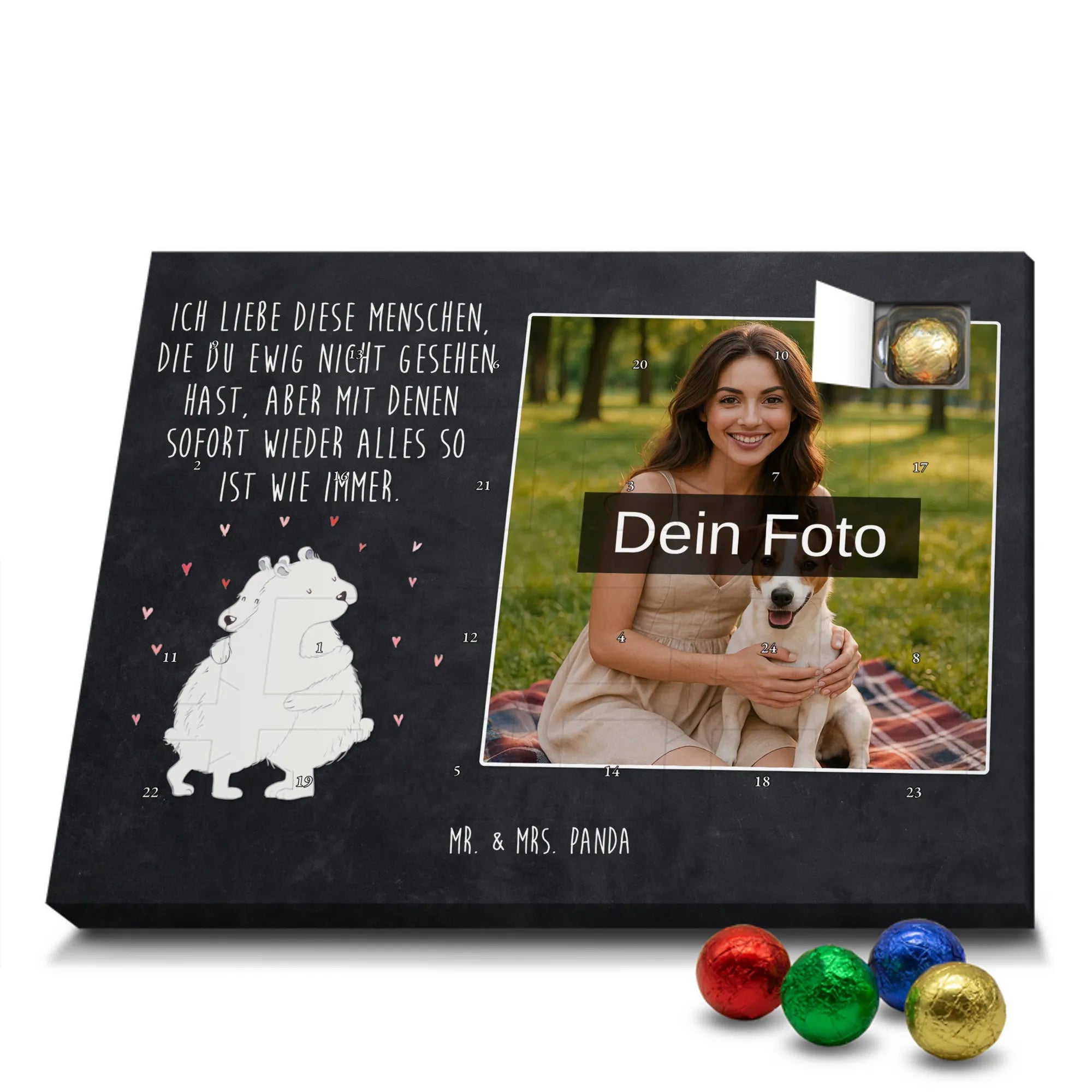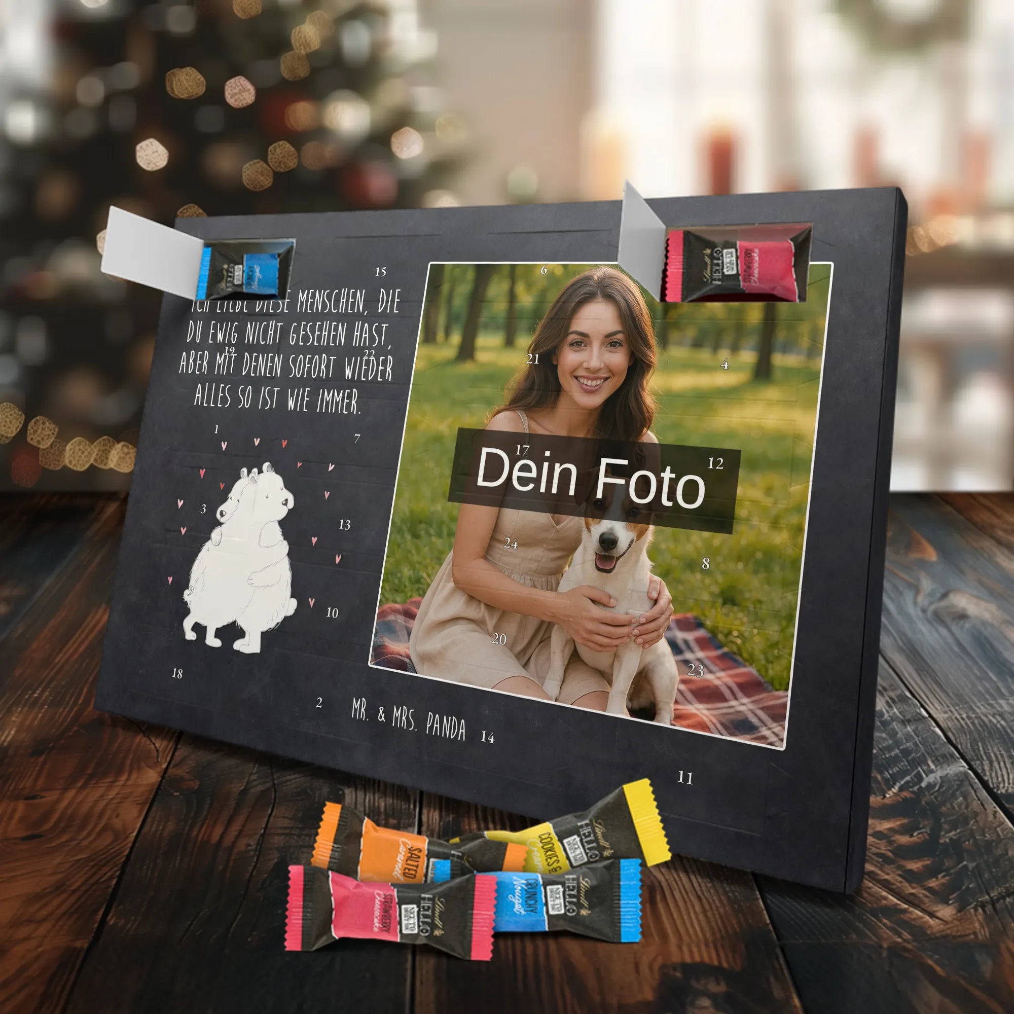 Verschenke Vorfreude: Gestalte jetzt deinen personalisierten Schoko Foto Adventskalender und überrasche mit süßen, persönlichen Momenten von Mr. & Mrs. Panda.