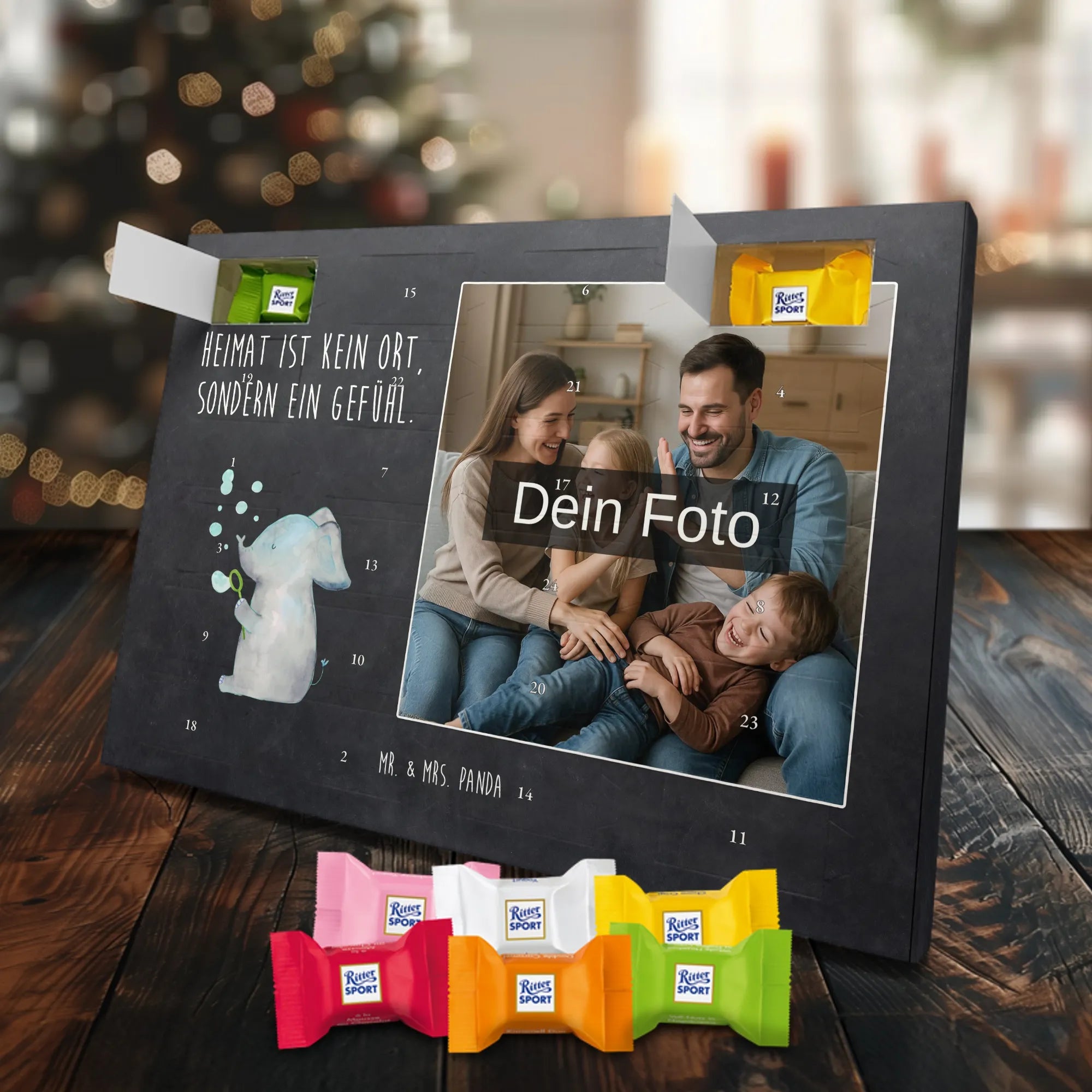 Wunderschöner Personalisierter Schoko Foto Adventskalender von Mr. & Mrs. Panda – das perfekte Geschenk für deine Liebsten! Dieser Adventskalender ist liebevoll gestaltet, bedruckt mit wunderschönen Motiven & Sprüchen von Mr. & Mrs. Panda und personalisierbar mit einem Foto deiner Wahl. Achte bitte auf hohe Auflösung: Lade ein Foto in guter Qualität und ausreichender Auflösung hoch, damit das Druckergebnis klar und brillant wird. Achte auf den richtigen Bildausschnitt, damit keine wichtigen Details abgeschnitten werden. Wir empfehlen, den Kalender-Rahmen vorher anzusehen, um zu wissen, wie dein Foto platziert wird. Lade nur Bilder hoch, bei denen du die Bildrechte besitzt oder die Erlaubnis hast. Die Fotos werden weder aufbereitet noch zugeschnitten. Rücknahme bei personalisierten Foto Artikeln ist ausgeschlossen. Der Kalender besticht durch brillante Druckqualität mit seidenmatter Oberflächenveredelung und bedruckte Seitenflächen. Maße: 325 mm x 225 mm x 27 mm. Besonderheit: Kann aufgehängt oder aufgestellt werden – ganz wie du möchtest. Gefüllt ist der Kalender mit Ritter Sport Schokowürfeln in leckeren Geschmacksrichtungen: Mousse au Chocolat, Schoko Crisp, Voll-Nuss in Nougatcreme, Karamell Duo, Joghurt und Erdbeer-Joghurt. Ein zauberhaftes, persönliches Geschenk, das Vorfreude bereitet und jeden Tag im Advent versüßt!