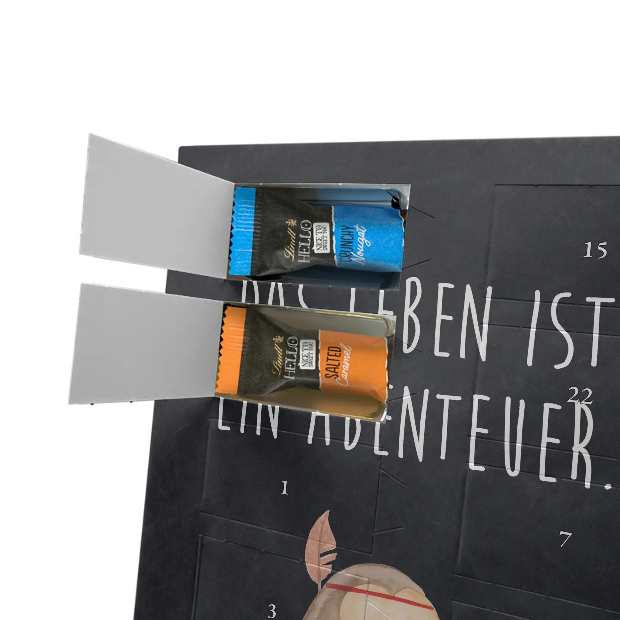 Dieser Foto Adventskalender ist nicht einfach nur ein Kalender mit Süßigkeiten, er ist ein Träger von Erinnerungen und Emotionen. Das Motiv Eule Federschmuck aus unserer beliebten Eulen-Kollektion zeigt eine zuckersüße Eule, die stolz eine Feder auf ihrem Kopf trägt. Unterstrichen wird dieses handgezeichnete Aquarell-Kunstwerk durch den inspirierenden Spruch 'Das Leben ist ein Abenteuer'. Es ist die perfekte Botschaft für alle Entdecker, Naturfreunde und Freigeister. 🦉✨