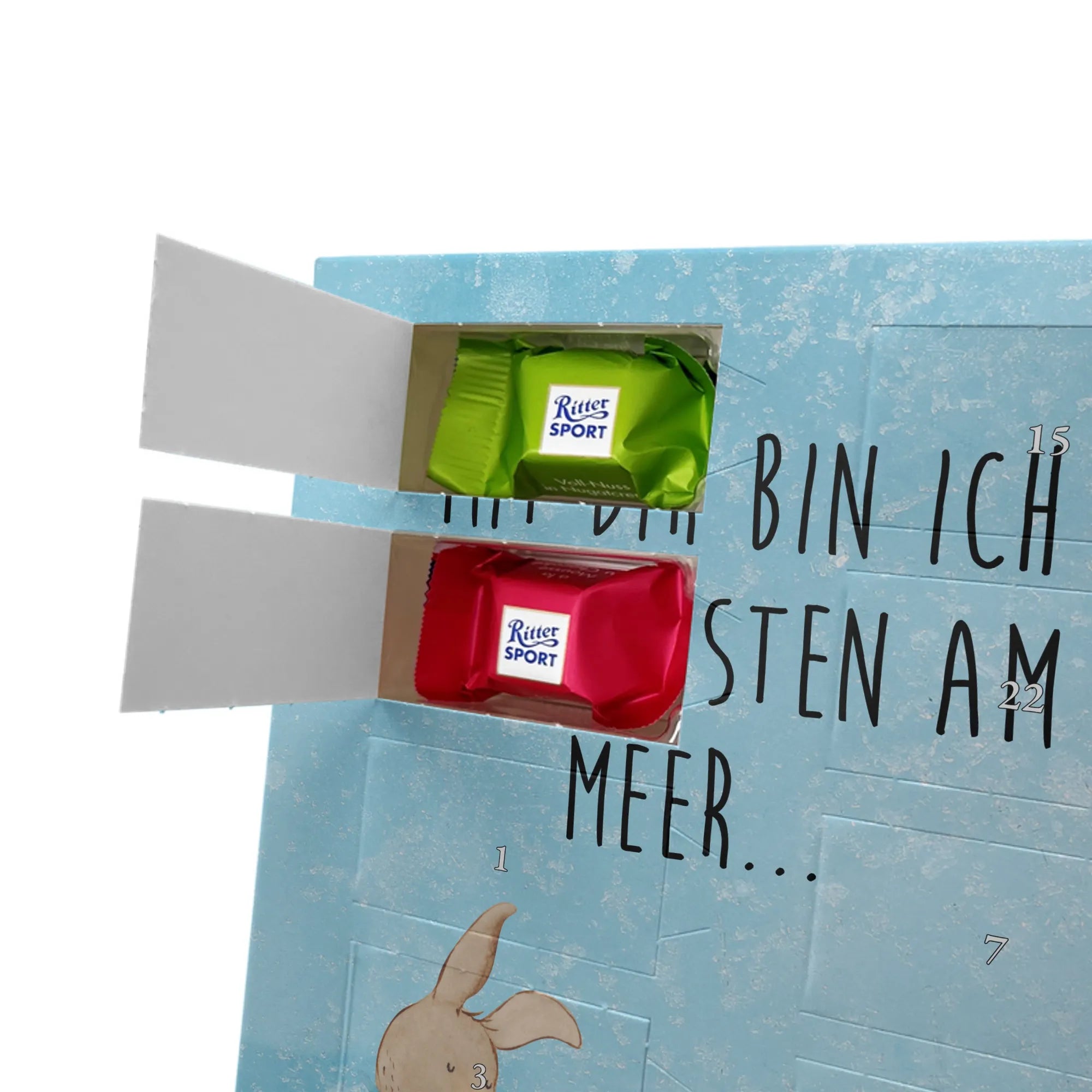 Wunderschöner Personalisierter Schoko Foto Adventskalender von Mr. & Mrs. Panda – das perfekte Geschenk für deine Liebsten! Dieser Adventskalender ist liebevoll gestaltet, bedruckt mit wunderschönen Motiven & Sprüchen von Mr. & Mrs. Panda und personalisierbar mit einem Foto deiner Wahl. Achte bitte auf hohe Auflösung: Lade ein Foto in guter Qualität und ausreichender Auflösung hoch, damit das Druckergebnis klar und brillant wird. Achte auf den richtigen Bildausschnitt, damit keine wichtigen Details abgeschnitten werden. Wir empfehlen, den Kalender-Rahmen vorher anzusehen, um zu wissen, wie dein Foto platziert wird. Lade nur Bilder hoch, bei denen du die Bildrechte besitzt oder die Erlaubnis hast. Die Fotos werden weder aufbereitet noch zugeschnitten. Rücknahme bei personalisierten Foto Artikeln ist ausgeschlossen. Der Kalender besticht durch brillante Druckqualität mit seidenmatter Oberflächenveredelung und bedruckte Seitenflächen. Maße: 325 mm x 225 mm x 27 mm. Besonderheit: Kann aufgehängt oder aufgestellt werden – ganz wie du möchtest. Gefüllt ist der Kalender mit Ritter Sport Schokowürfeln in leckeren Geschmacksrichtungen: Mousse au Chocolat, Schoko Crisp, Voll-Nuss in Nougatcreme, Karamell Duo, Joghurt und Erdbeer-Joghurt. Ein zauberhaftes, persönliches Geschenk, das Vorfreude bereitet und jeden Tag im Advent versüßt!