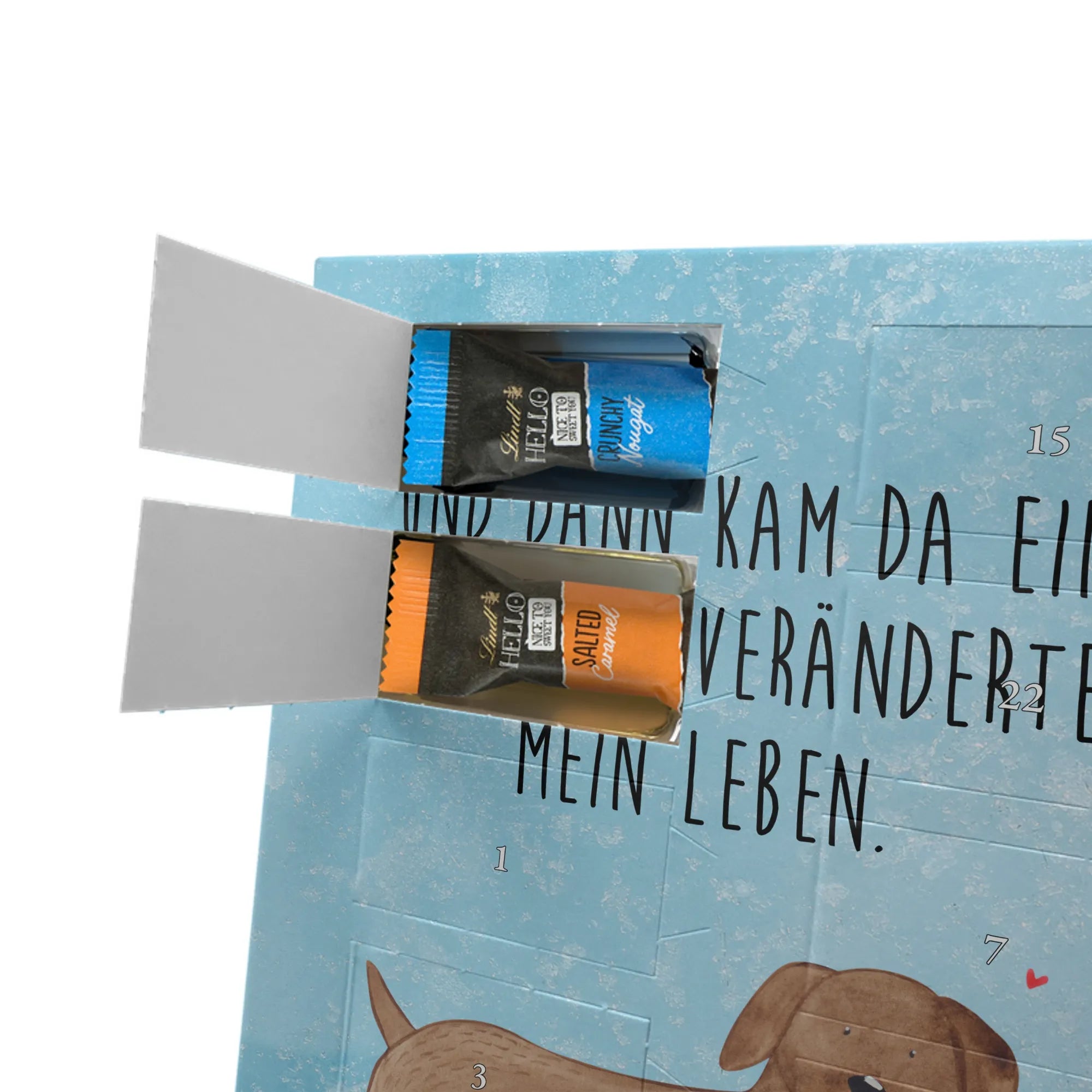 Kreiere persönliche Adventsmomente mit dem Foto Adventskalender personalisiert von Mr. & Mrs. Panda. Jede Tür ist umrahmt von liebevollen Illustrationen und charmanten Sprüchen, der zentrale Bereich ist für dein Foto reserviert – so wird der Kalender zum individuellen Highlight. Achte auf eine hohe Auflösung und den richtigen Bildausschnitt, damit das Foto klar gedruckt wird; lade nur Bilder hoch, deren Nutzung du erlauben darfst. Die seidenmatte Veredelung und die komplett bedruckten Seitenflächen machen den Kalender besonders hochwertig. Maße: 325 mm x 225 mm x 27 mm. Im Inneren: 24 einzeln verpackte Schokoladen Mini Sticks in vier leckeren Varianten: Karamell-Schokoladenkuchen, Kekse, Knuspriger Nougat und Erdbeer-Cheesecake. Gefüllt mit Lindt Hello Schokolade. Allergene: Milcheiweiß, Milchzucker, Soja, Weizen, Haselnüsse; kann Spuren von Mandeln und weiteren Schalenfrüchten enthalten. Der Kalender lässt sich aufstellen oder aufhängen. Wichtiger Hinweis: Fotos werden weder nachbearbeitet noch zugeschnitten – personalisierte Foto-Artikel sind vom Umtausch ausgeschlossen. Verschenke Freude, Erinnerungen und Schokolade in einem liebevoll gestalteten Adventskalender!
