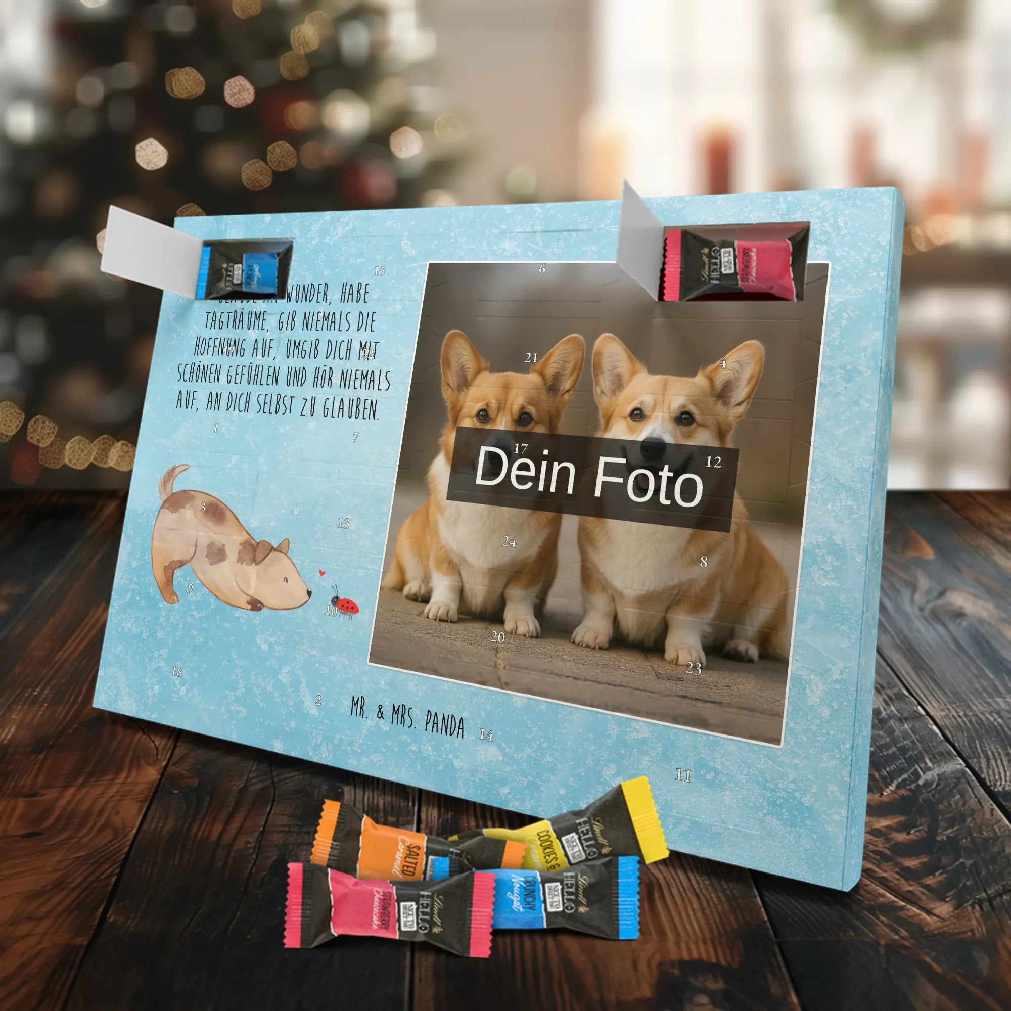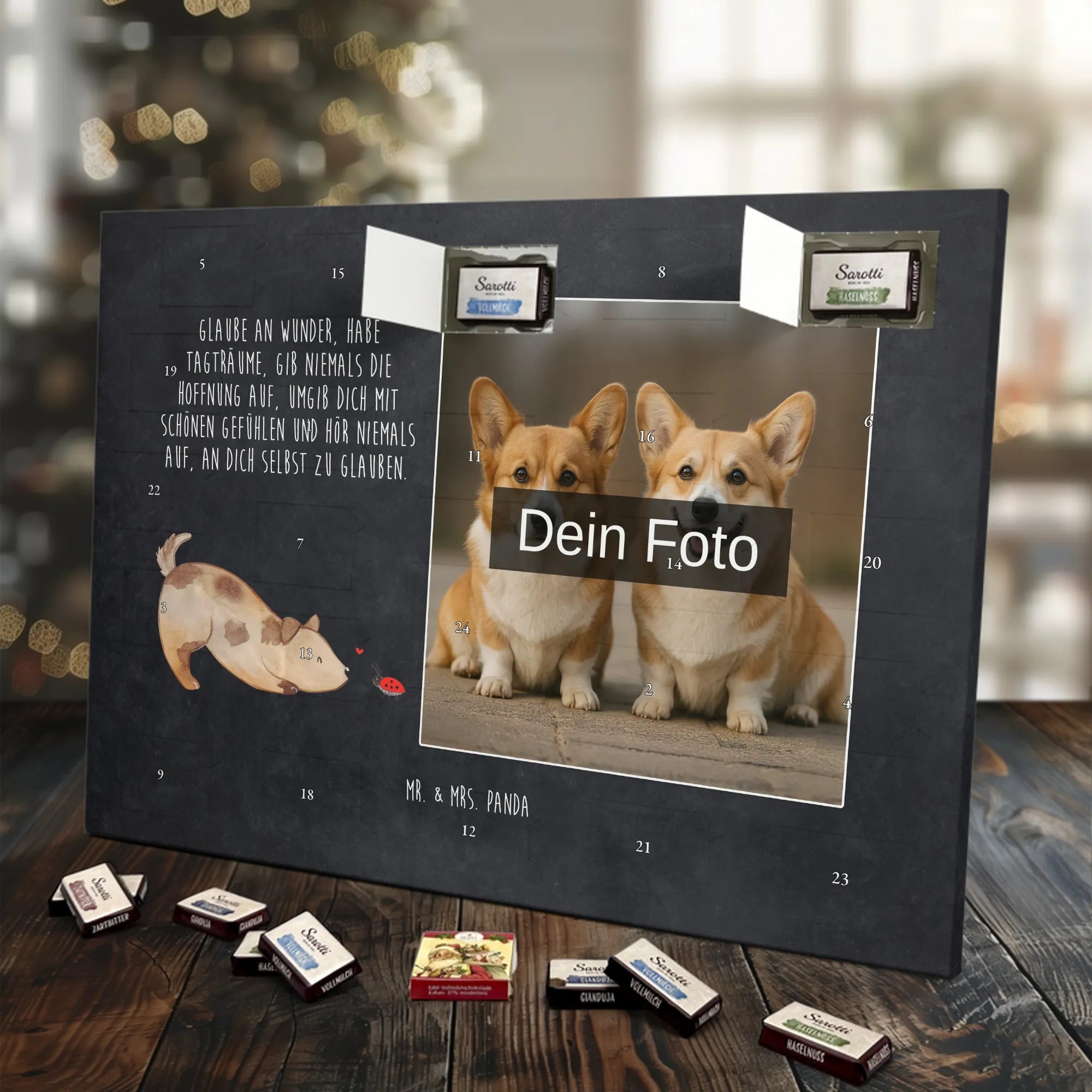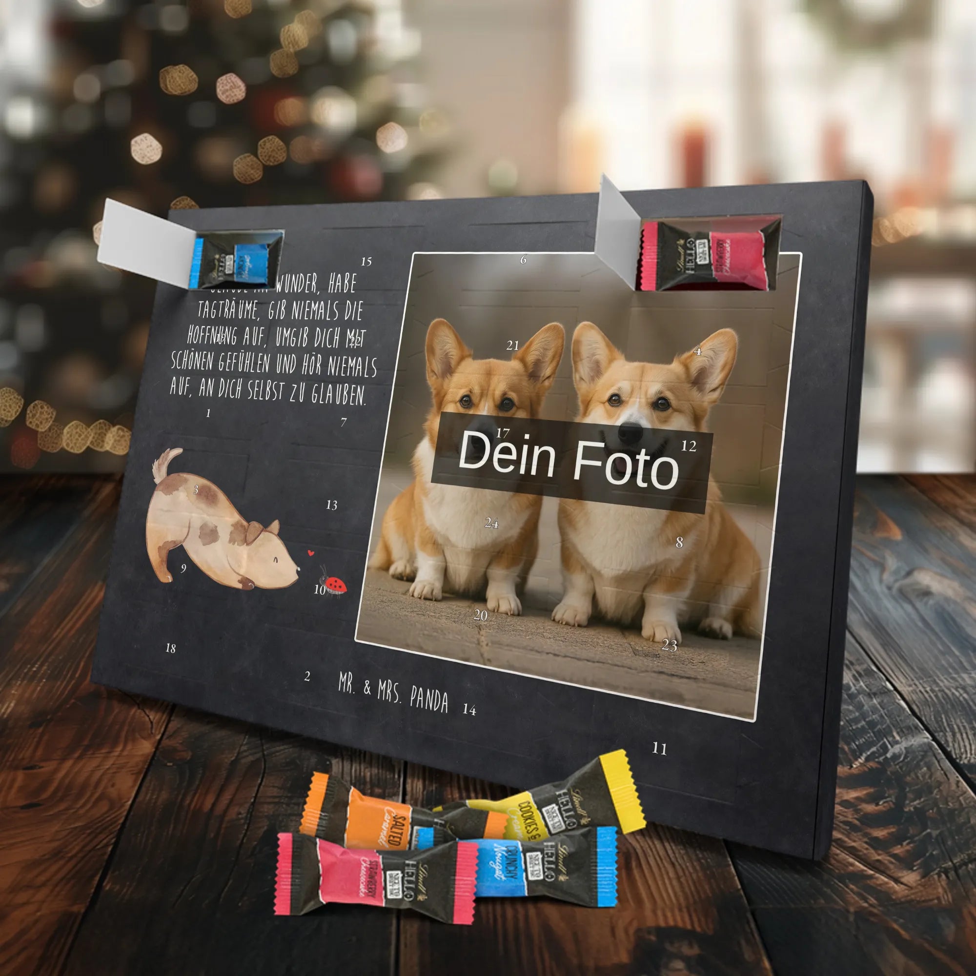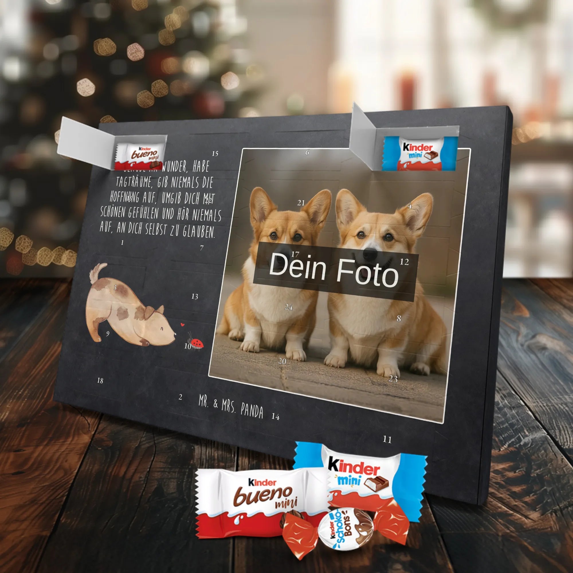 Verschenke Vorfreude: Gestalte jetzt deinen personalisierten Schoko Foto Adventskalender und überrasche mit süßen, persönlichen Momenten von Mr. & Mrs. Panda.