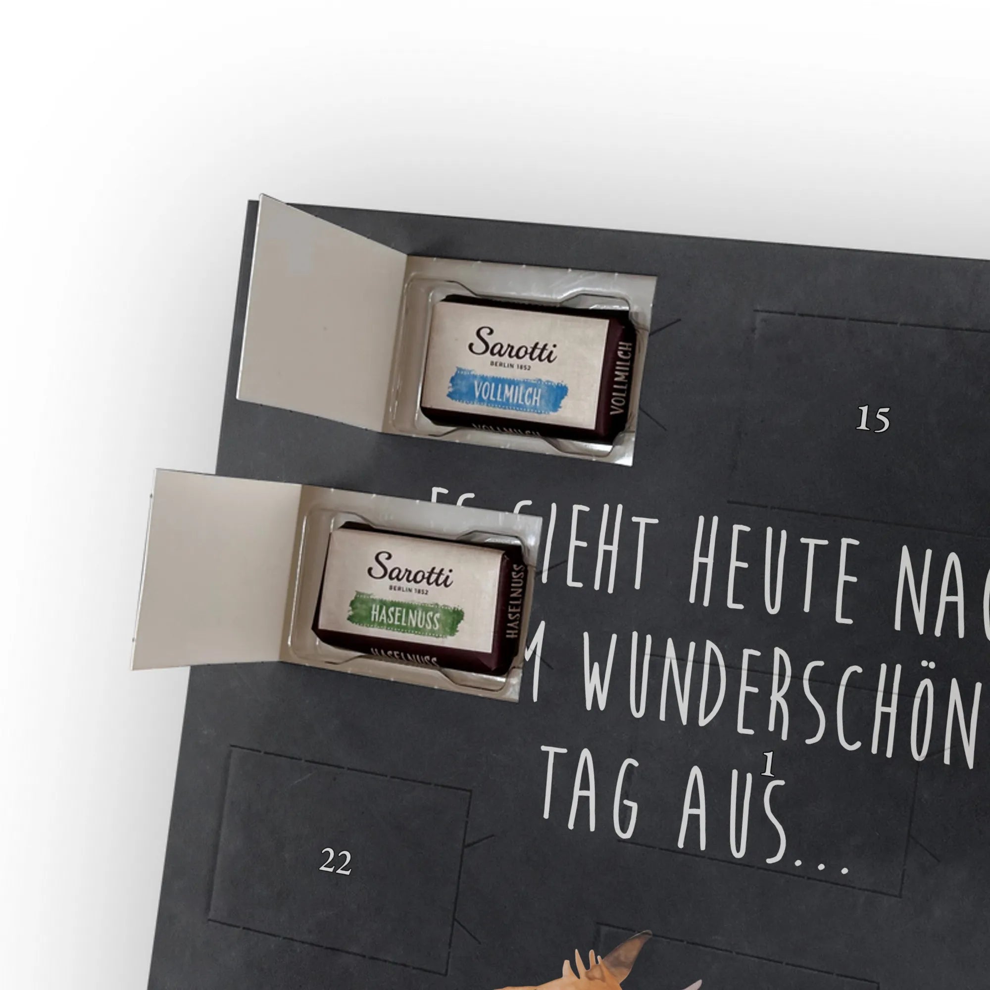 Personalisierter Schoko-Adventskalender mit Foto – das kleine Weihnachtswunder von Mr. & Mrs. Panda! Verschenke jeden Tag Vorfreude: Der Kalender ist liebevoll gestaltet mit unseren herzlichen Illustrationen und Sprüchen, während dein Foto die persönliche Mitte bildet. Bitte lade ein hochauflösendes Foto hoch und prüfe den Bildausschnitt, damit nichts Wichtiges verloren geht. Nutze nur Bilder, für die du die Rechte hast. Die hochwertige, seidenmatte Veredelung und die bedruckten Seitenflächen garantieren ein edles Erscheinungsbild. Maße: 355 mm x 245 mm x 11 mm; lässt sich sowohl aufhängen als auch aufstellen. Achtung: Fotos werden nicht nachbearbeitet oder zugeschnitten; personalisierte Artikel sind vom Rückgaberecht ausgeschlossen. Gefüllt mit 24 einzeln verpackten Schokoladentäfelchen aus den vier Geschmacksrichtungen Vollmilch, Nougat, Zartbitter und Haselnuss – von Sarotti® und Confiserie Heidel®. Insgesamt enthält der Kalender 107 g Markenschokolade. Ein persönliches Geschenk mit süßem Inhalt, ideal für Partner, Familie und Freunde, verpackt mit der typischen Mr. & Mrs. Panda Liebe zum Detail.