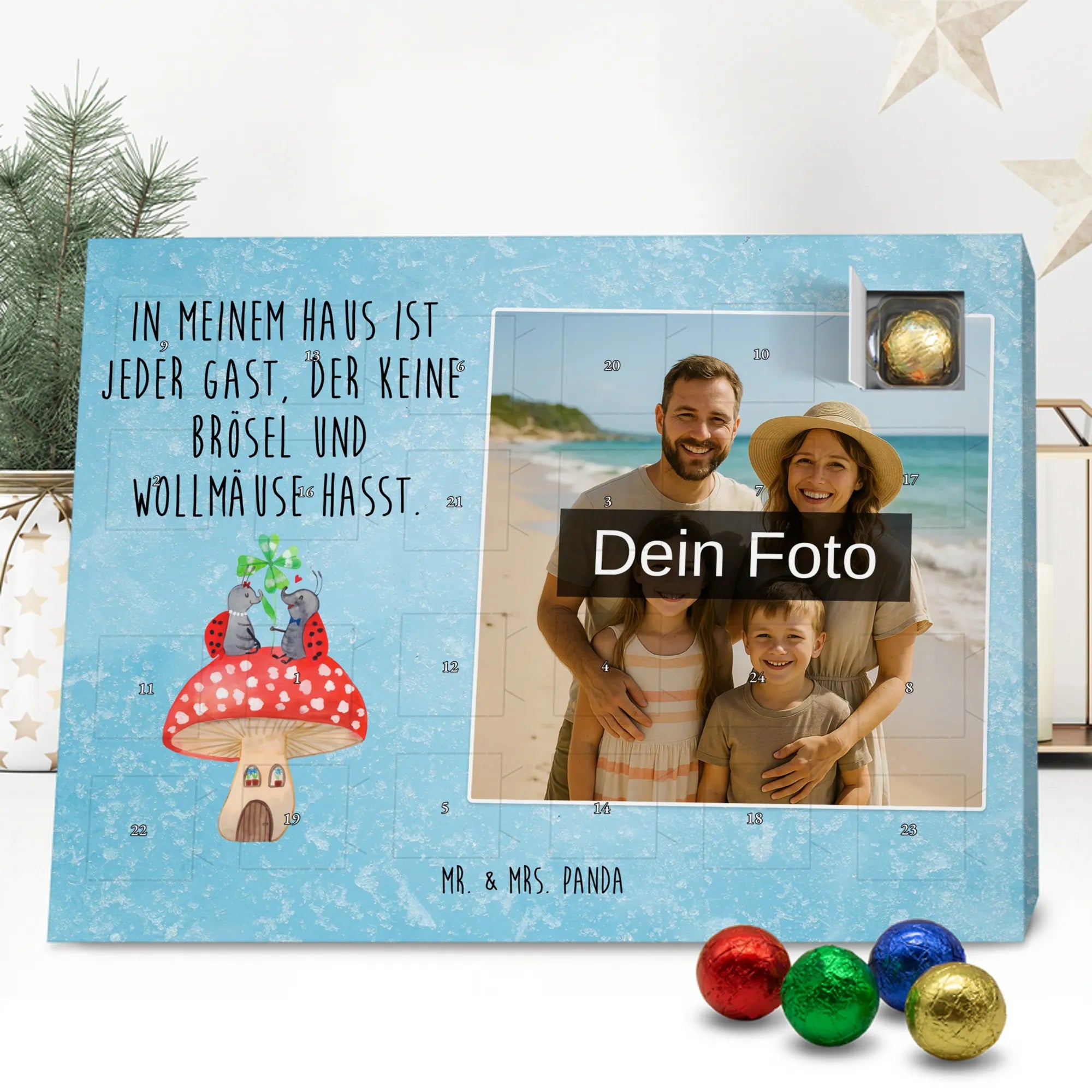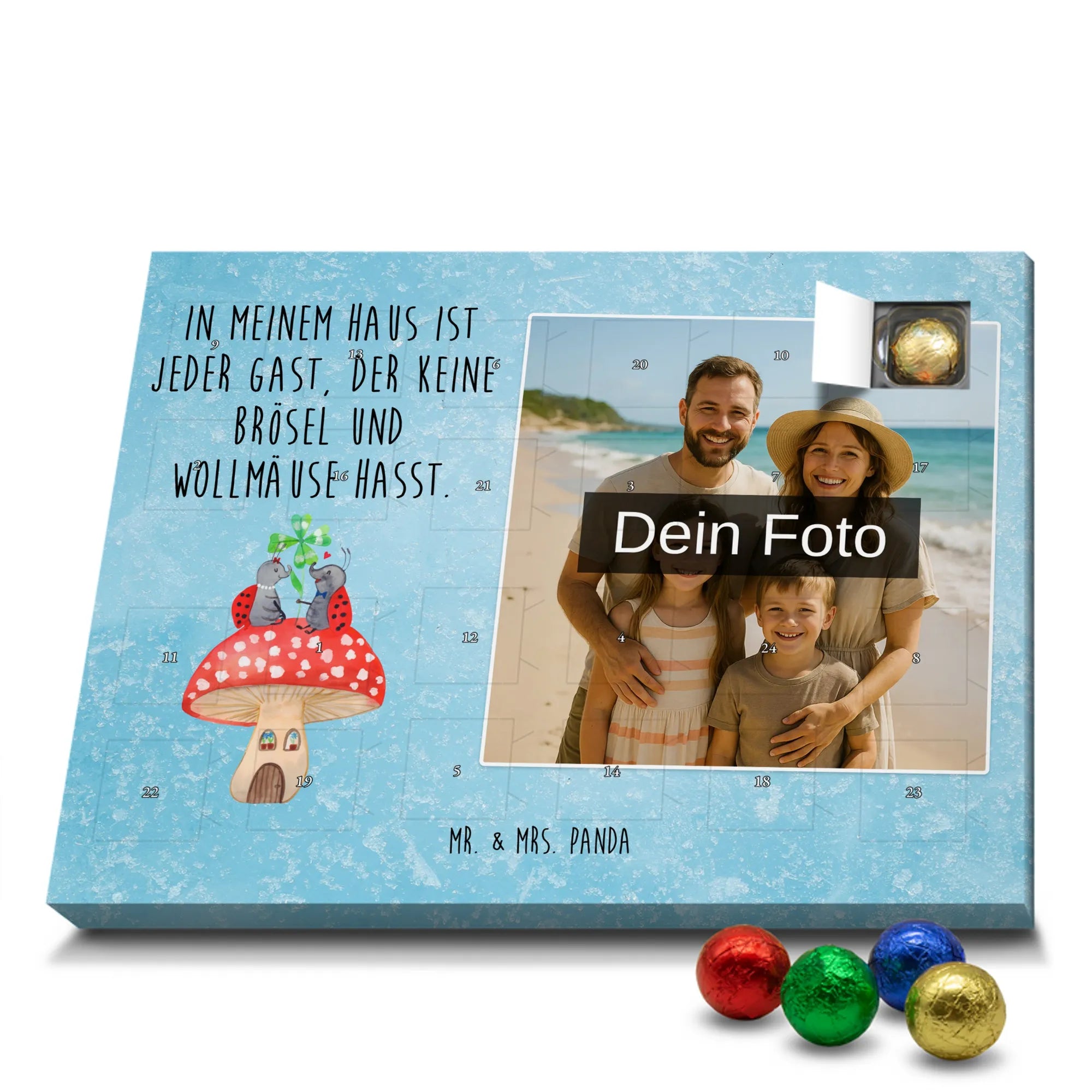 Personalisierter Schoko Foto Adventskalender Marienkäfer Fliegenpilz - Kinder Schokolade - Eisblau