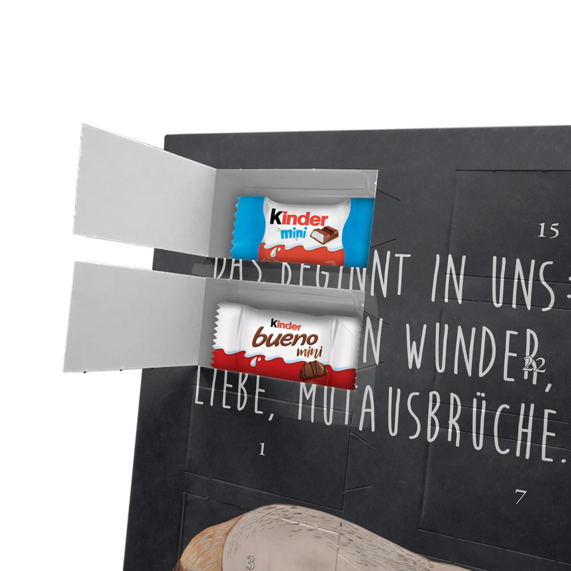 Unser personalisierten Schoko Foto Adventskalender ist ein echtes Highlight in der Adventszeit – handlich, individuell und voller süßer Überraschungen. Du personalisierst die Vorderseite mit deinem liebsten Foto und wir kombinieren es mit liebevollen Motiven und Sprüchen von Mr. & Mrs. Panda. Bitte achte auf eine ausreichende Bildauflösung und einen passenden Bildausschnitt, damit das Druckergebnis gestochen scharf ist. Lade nur Bilder hoch, deren Rechte du besitzt oder bei denen du die Erlaubnis hast, besonders wenn Personen darauf zu sehen sind. Wichtig: Fotos werden nicht retuschiert oder zugeschnitten; personalisierte Foto-Artikel sind vom Widerruf ausgeschlossen. Der Kalender besticht durch brillante Druckqualität und eine seidenmatte Oberflächenveredelung sowie bedruckte Seitenflächen. Maße: 355 mm x 245 mm x 11 mm. Du kannst ihn entweder aufstellen oder an die Wand hängen. Gefüllt ist der Adventskalender mit kinder® Schokolade, inklusive kinder® Schoko-Bons, kinder® Bueno mini und kinder® Schokolade mini. Ein liebevolles, persönliches Geschenk für Kinder, Freunde oder die bessere Hälfte – individuell, süß und mit dem typischen Mr. & Mrs. Panda Charme.