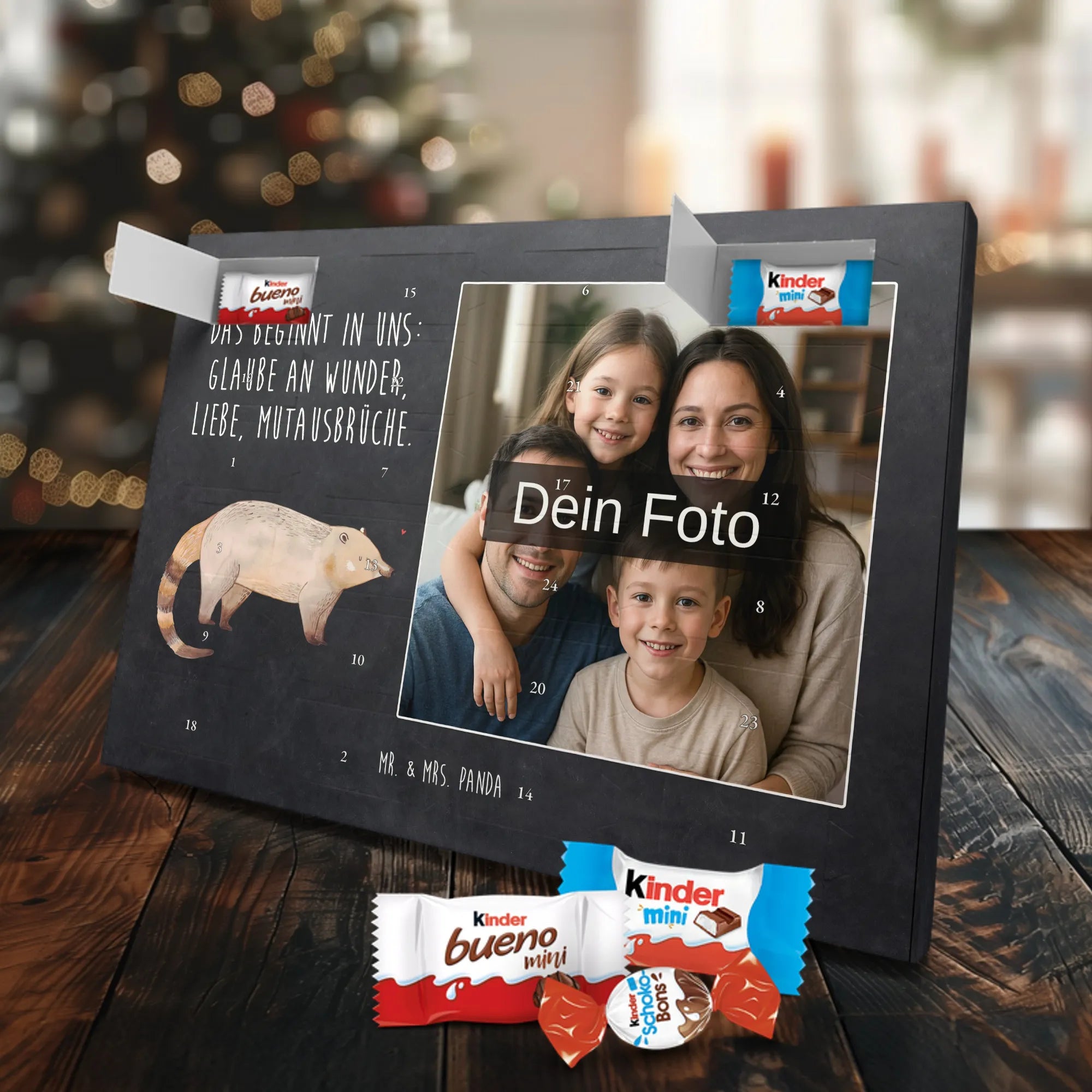🐼 Personalisierter Schoko-Foto-Adventskalender mit deinem Bild, Mr. & Mrs. Panda Motiven und gefüllt mit kinder® Schokolade.