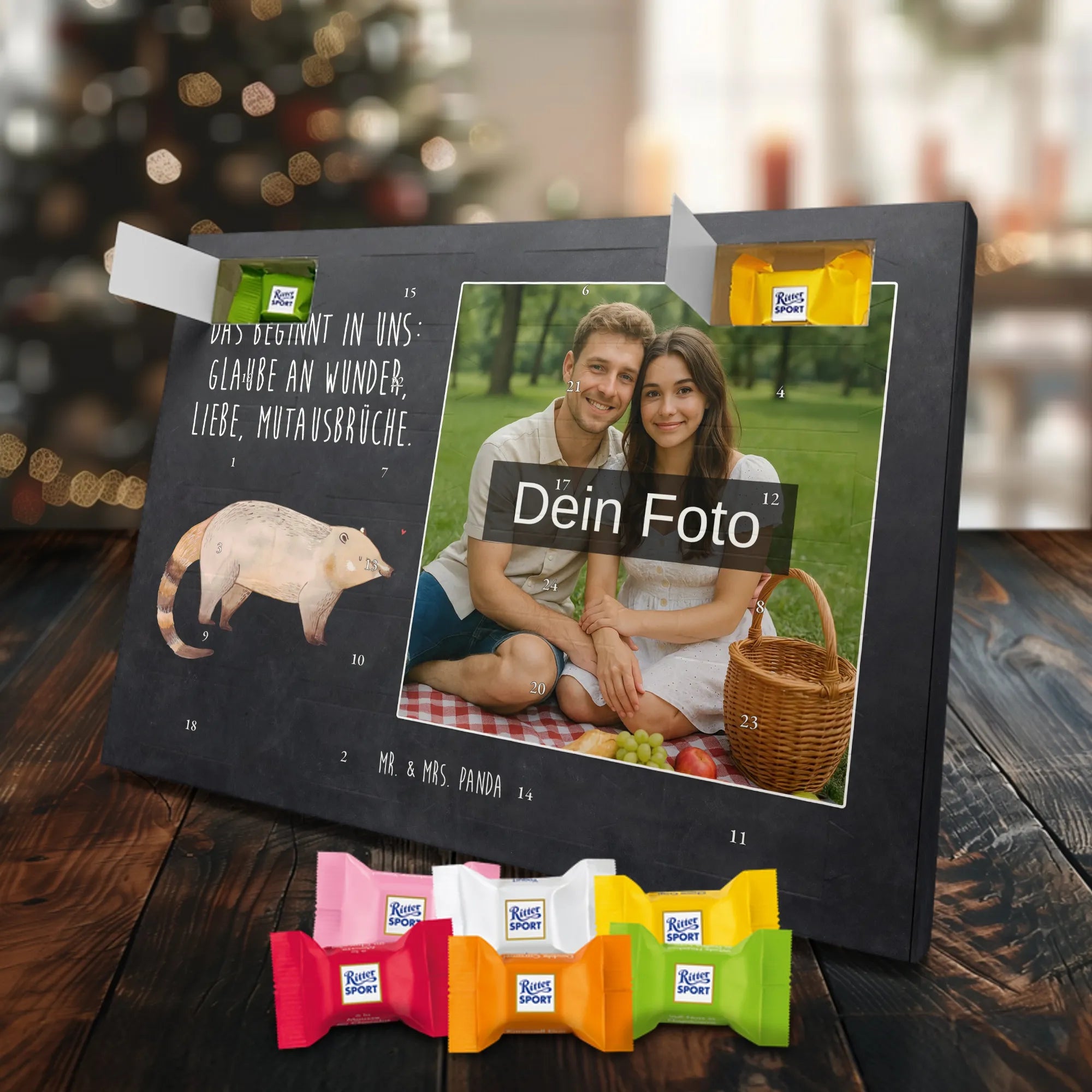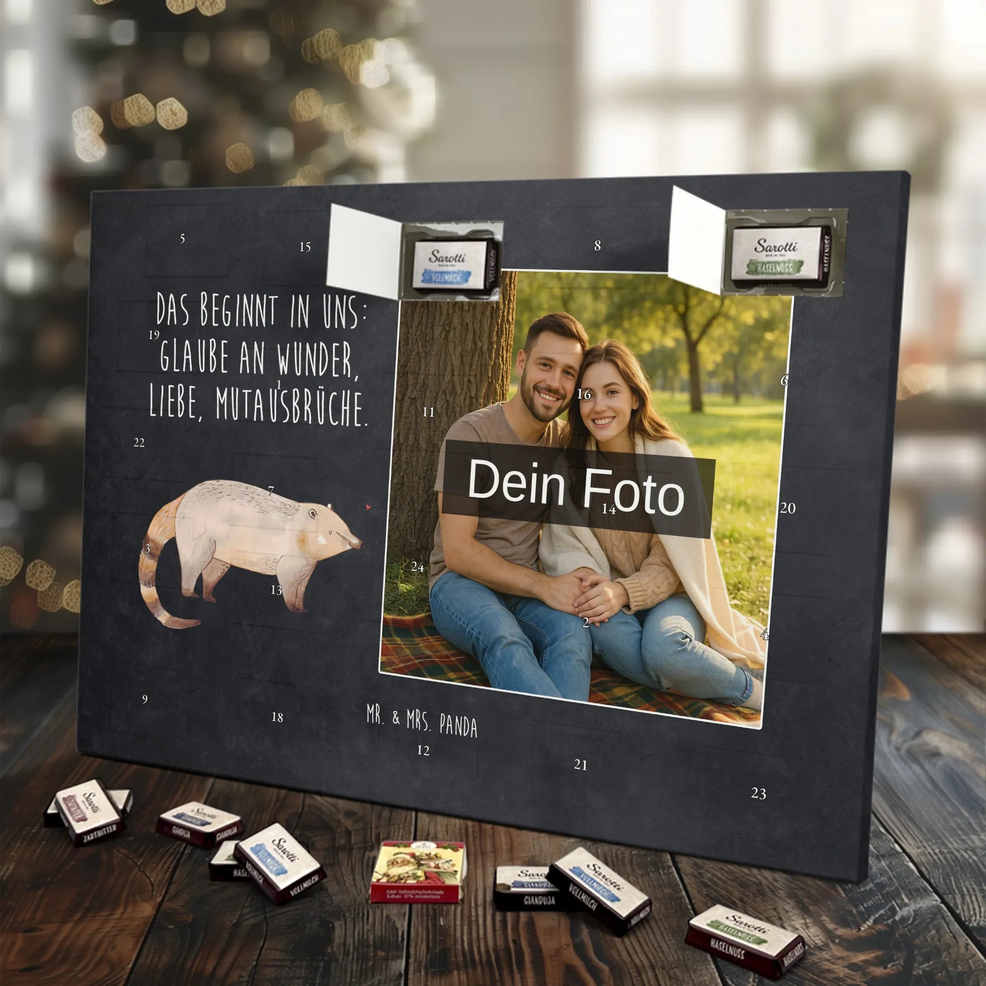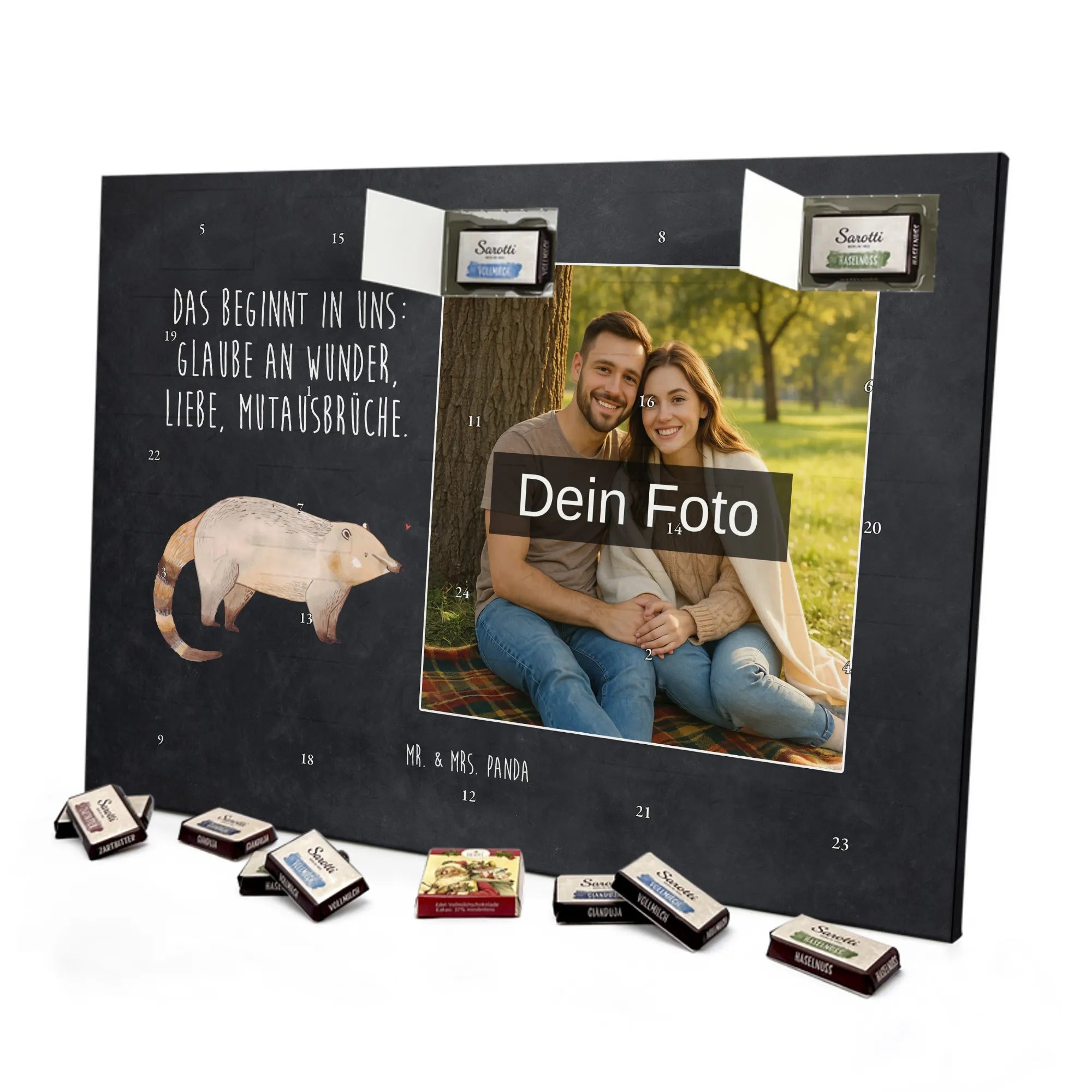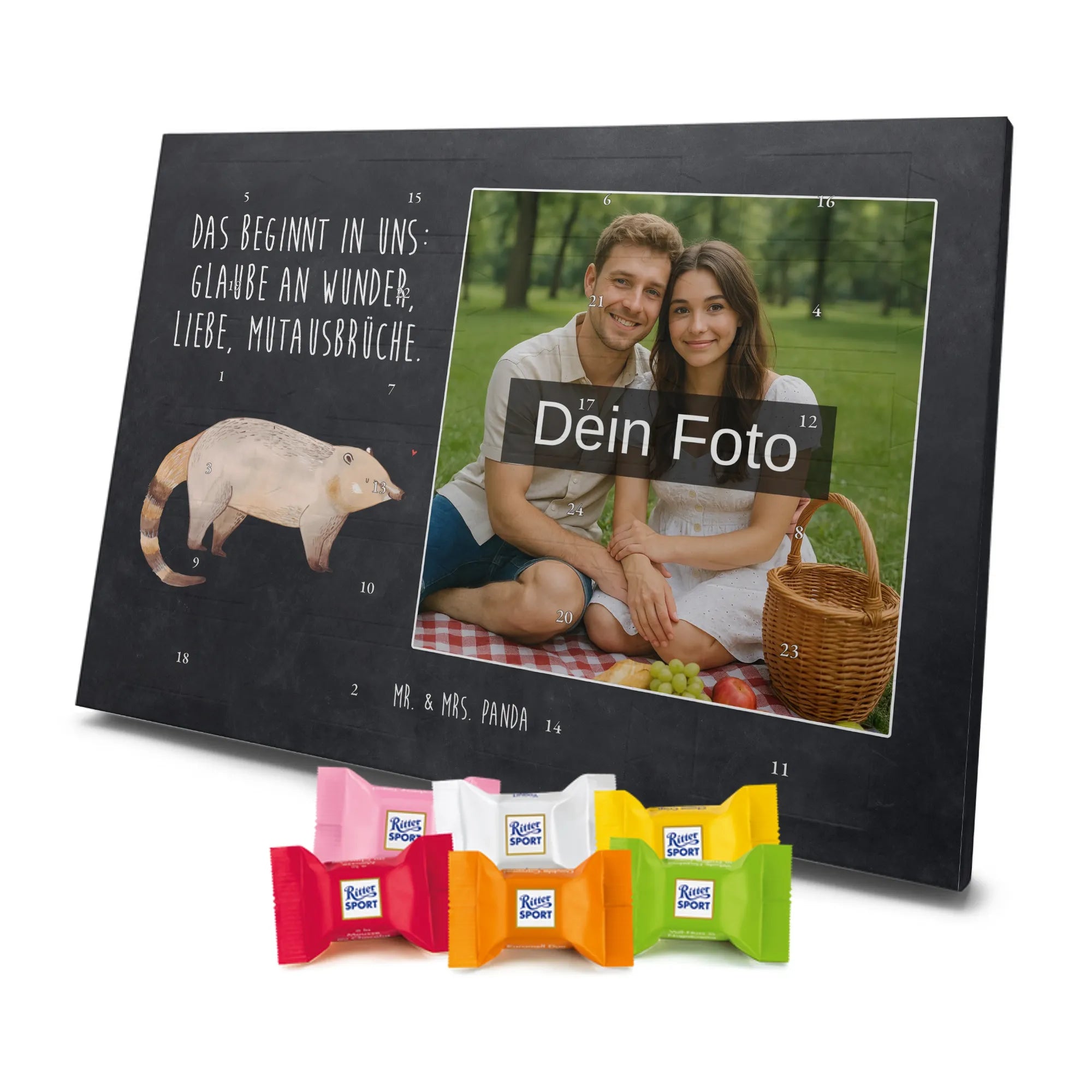 Personalisierter Schoko Foto Adventskalender Nasenbär – Mr. & Mrs. Panda