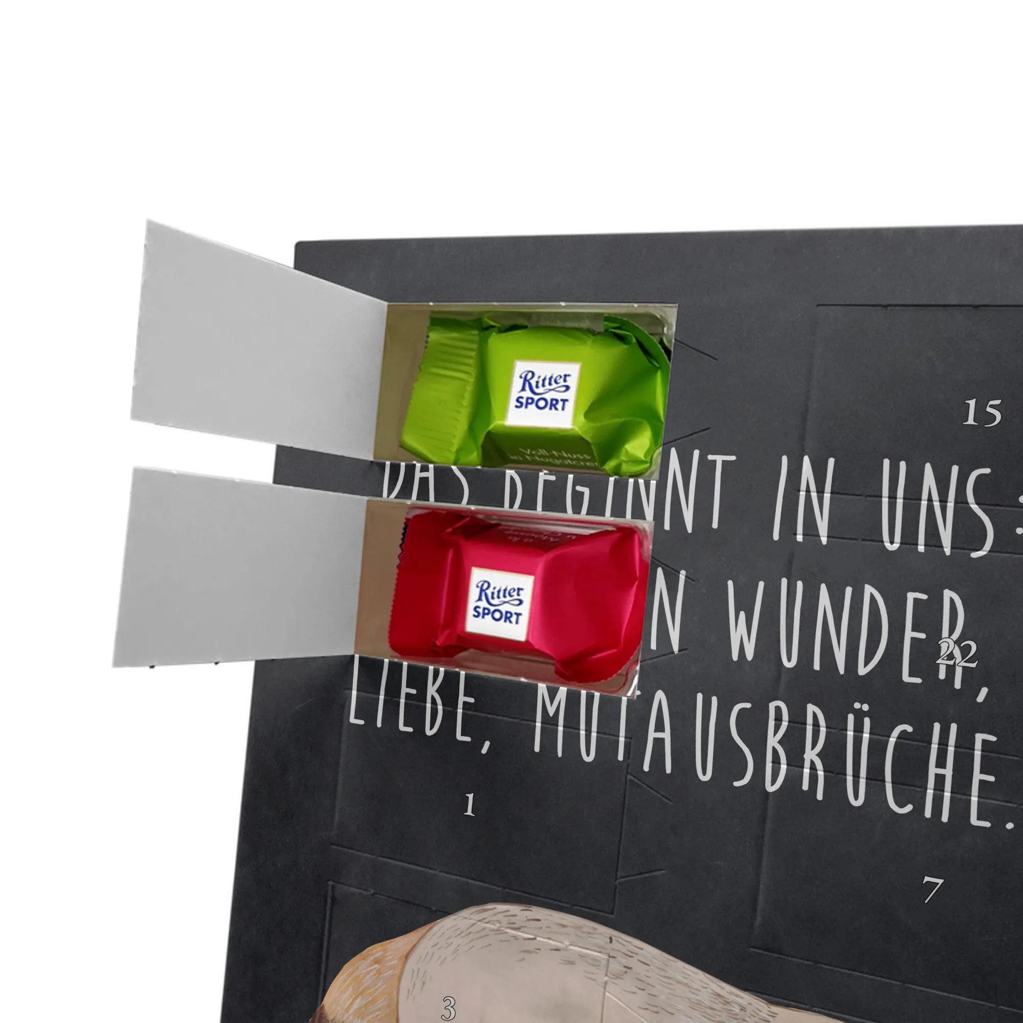 Schoko Foto Adventskalender personalisiert – ein fröhlicher Hingucker von Mr. & Mrs. Panda, der Adventszeit und Erinnerungen verbindet. Der Kalender ist bedruckt mit zauberhaften Motiven & Sprüchen von Mr. & Mrs. Panda und lässt sich ganz leicht mit einem Foto deiner Wahl personalisieren. Achtung Bildqualität: Für ein scharfes Druckbild solltest du ein Foto in hoher Auflösung verwenden. Kontrolliere den Bildausschnitt, damit wichtige Gesichter oder Details nicht verloren gehen. Verwende nur Fotos, für die du die Rechte besitzt oder die frei nutzbar sind. Bitte beachte: Die Fotos werden weder nachbearbeitet noch zugeschnitten und personalisierte Foto Artikel sind vom Umtausch ausgeschlossen. Die Verarbeitung überzeugt mit seidenmatter Oberflächenveredelung und bedruckten Seitenflächen für ein edles Finish. Maße: 325 mm x 225 mm x 27 mm. Besonderheit: Du kannst den Kalender aufhängen oder aufstellen – ganz flexibel. Gefüllt ist der Kalender mit Ritter Sport Schokowürfeln in leckeren Geschmacksrichtungen wie Mousse au Chocolat, Schoko Crisp, Voll-Nuss in Nougatcreme, Karamell Duo, Joghurt und Erdbeer-Joghurt. Ein liebevolles Geschenk, das jeden Tag im Advent versüßt.
