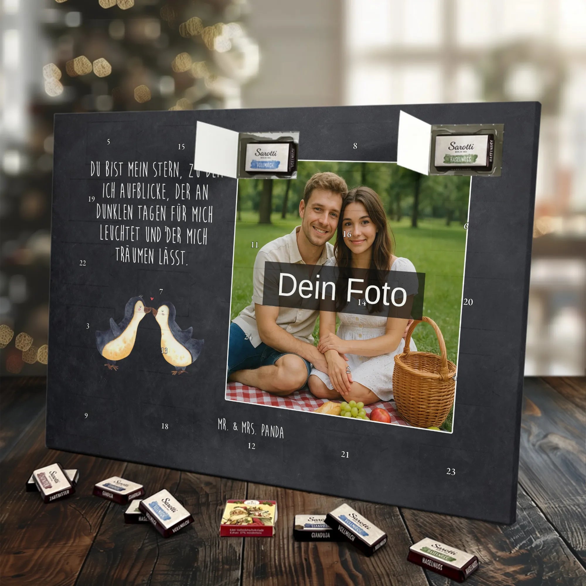 🐼 PERSONALISIERTER KALENDER: Dein Foto-Adventskalender mit 24 Schokoladentäfelchen und Mr. & Mrs. Panda Motiven.