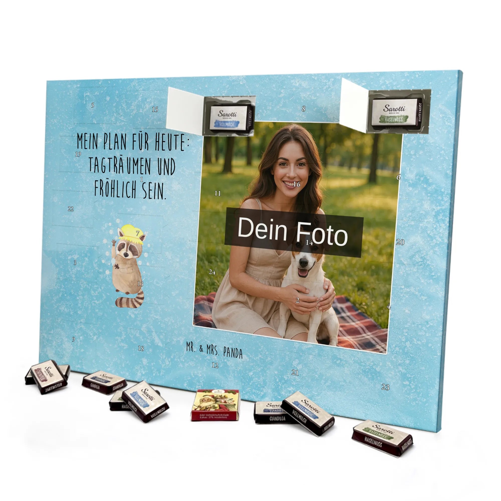 Personalisierter Schoko Foto Adventskalender Waschbär - Celebrations - Eisblau