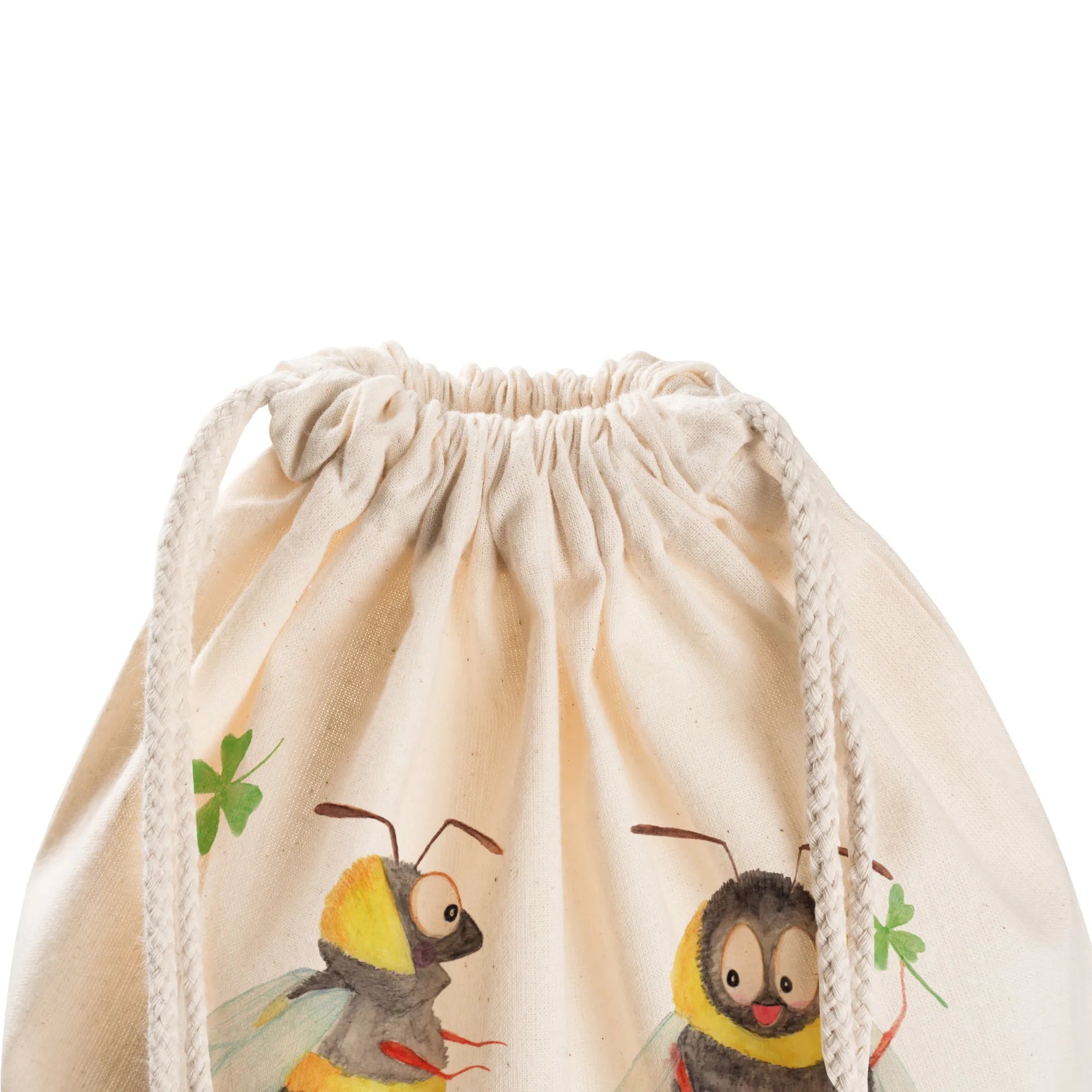 Mit den süßen Hummeln, die ein Kleeblatt in ihren kleinen Händen halten, vermittelt der Beutel nicht nur Freude, sondern auch ein Gefühl von Verbundenheit. „Da es sehr förderlich für die Gesundheit ist, habe ich beschlossen, glücklich zu sein.“ - genau dieser Spruch ziert den Beutel und erinnert jeden Träger daran, das Leben mit Leichtigkeit und Freude zu genießen.