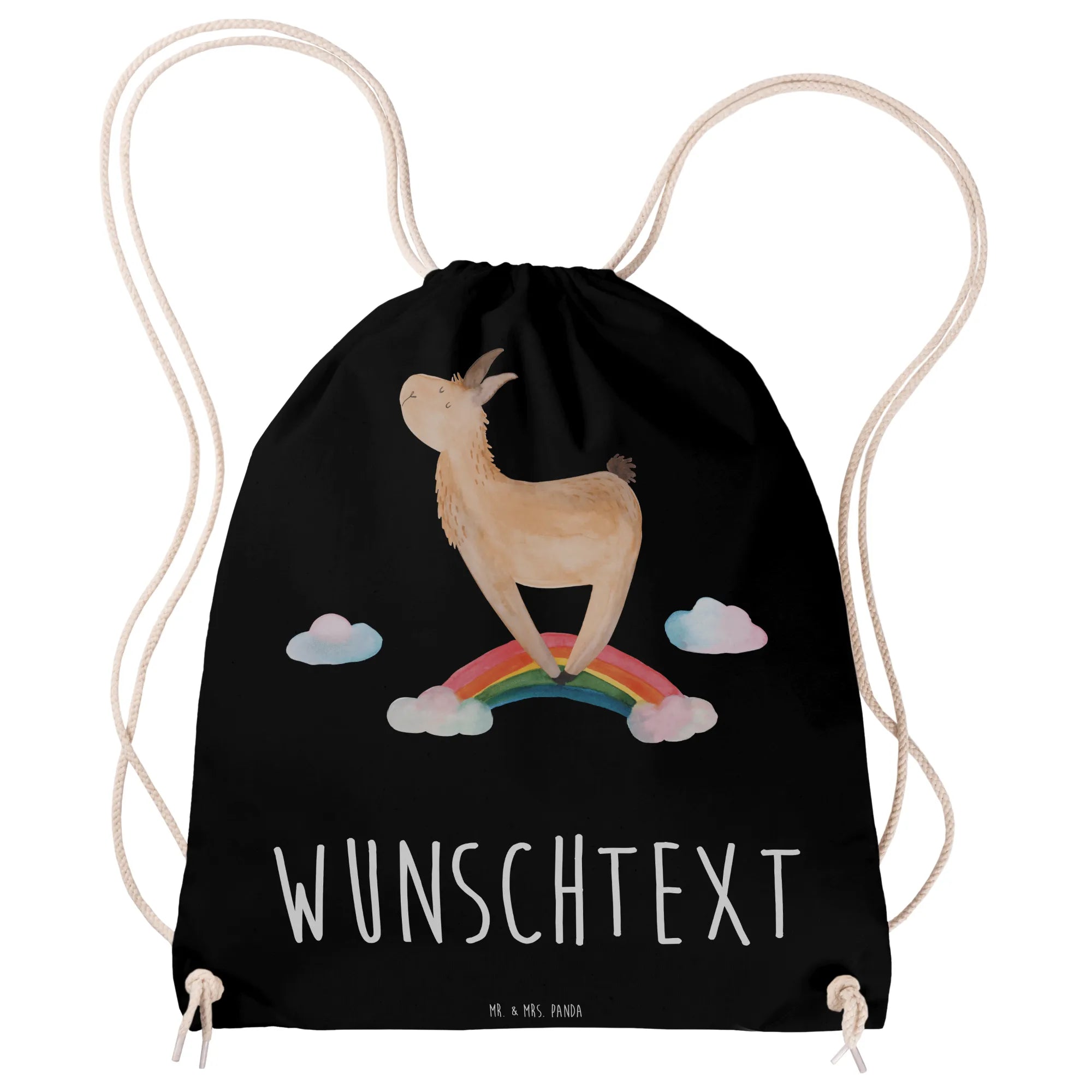 Der personalisierte Sportbeutel "Lama Regenbogen" von Mr. & Mrs. Panda ist der ideale Begleiter für Sport und Alltag! Dieser wunderschöne Beutel bietet dir die Möglichkeit, ihn mit deinem eigenen Namen oder Wunschtext zu personalisieren, wodurch er zu einem einzigartigen Geschenk wird.