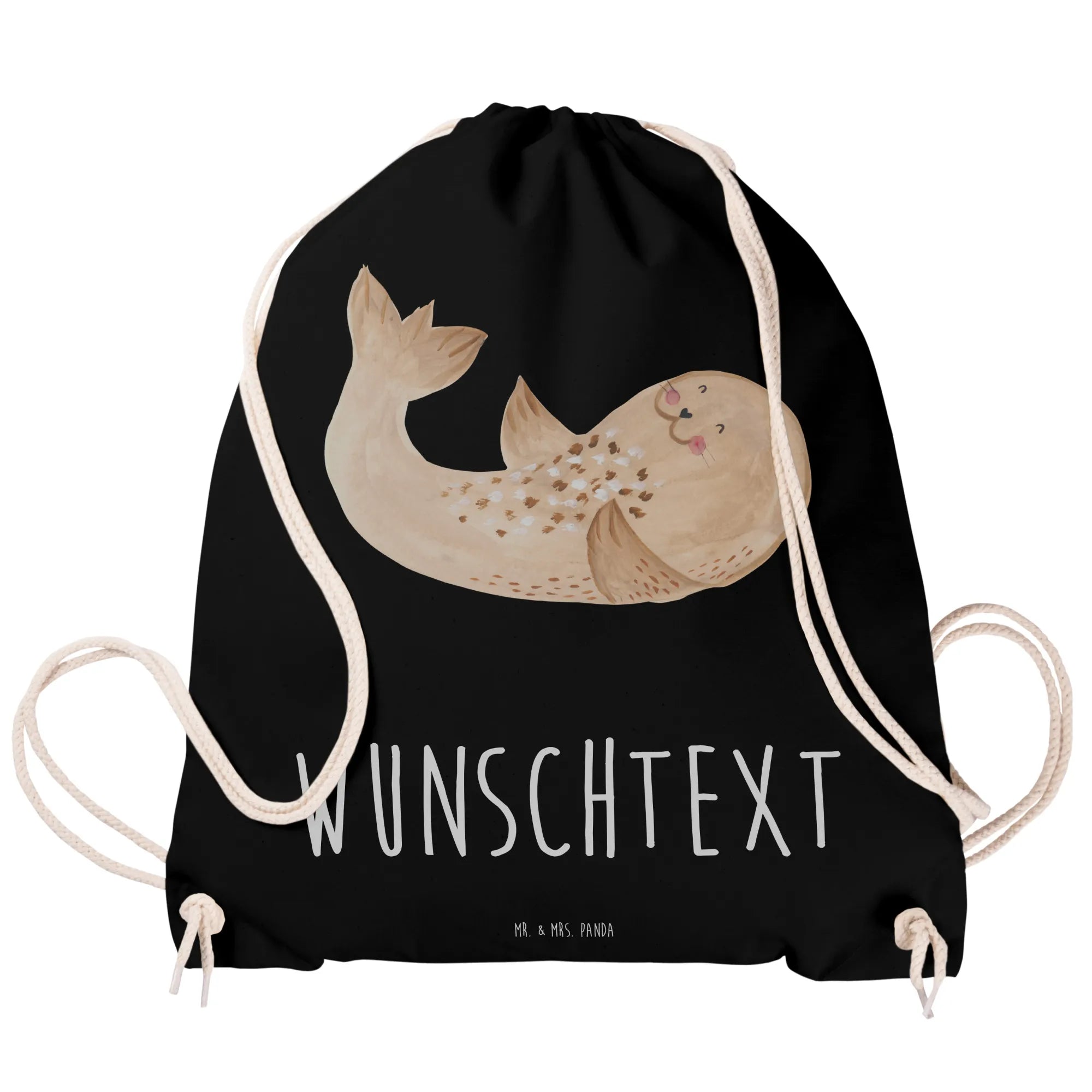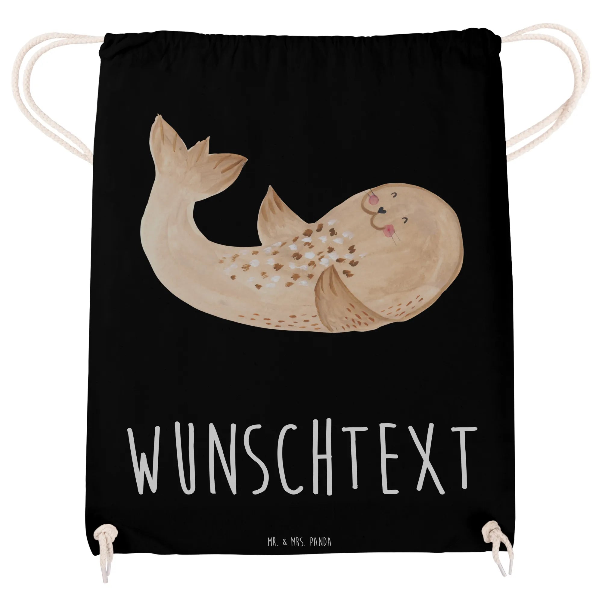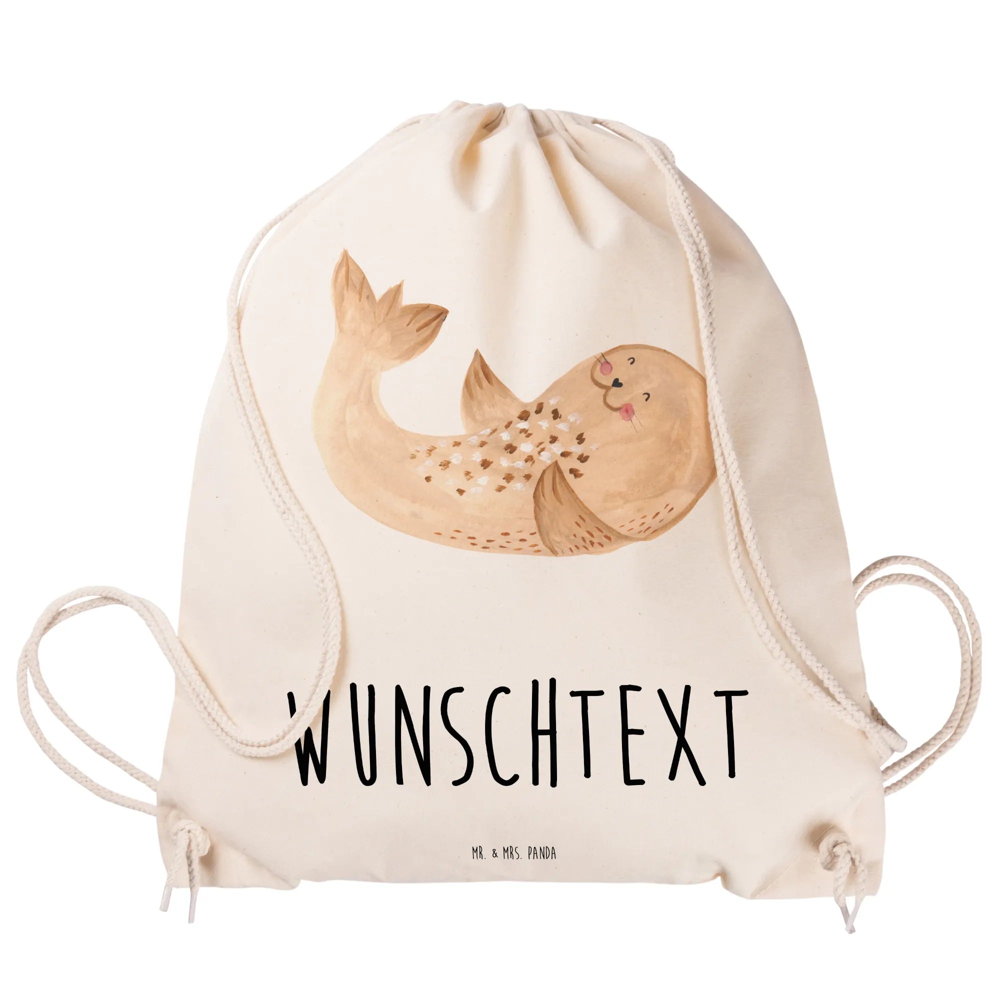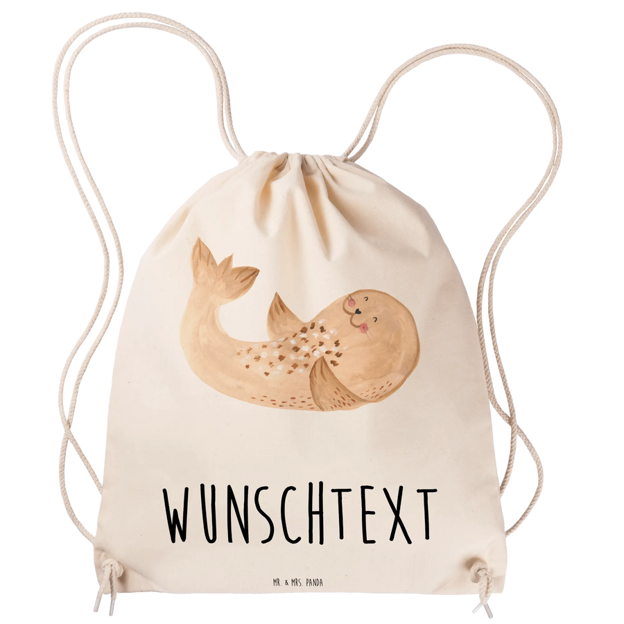 Mache es dir gemütlich wie unsere Robbe: Der personalisierte Sportbeutel „Robbe liegend“ aus der Small World Kollektion von Mr. & Mrs. Panda bringt Meereszauber und gute Laune in deinen Alltag. 🦭🌊