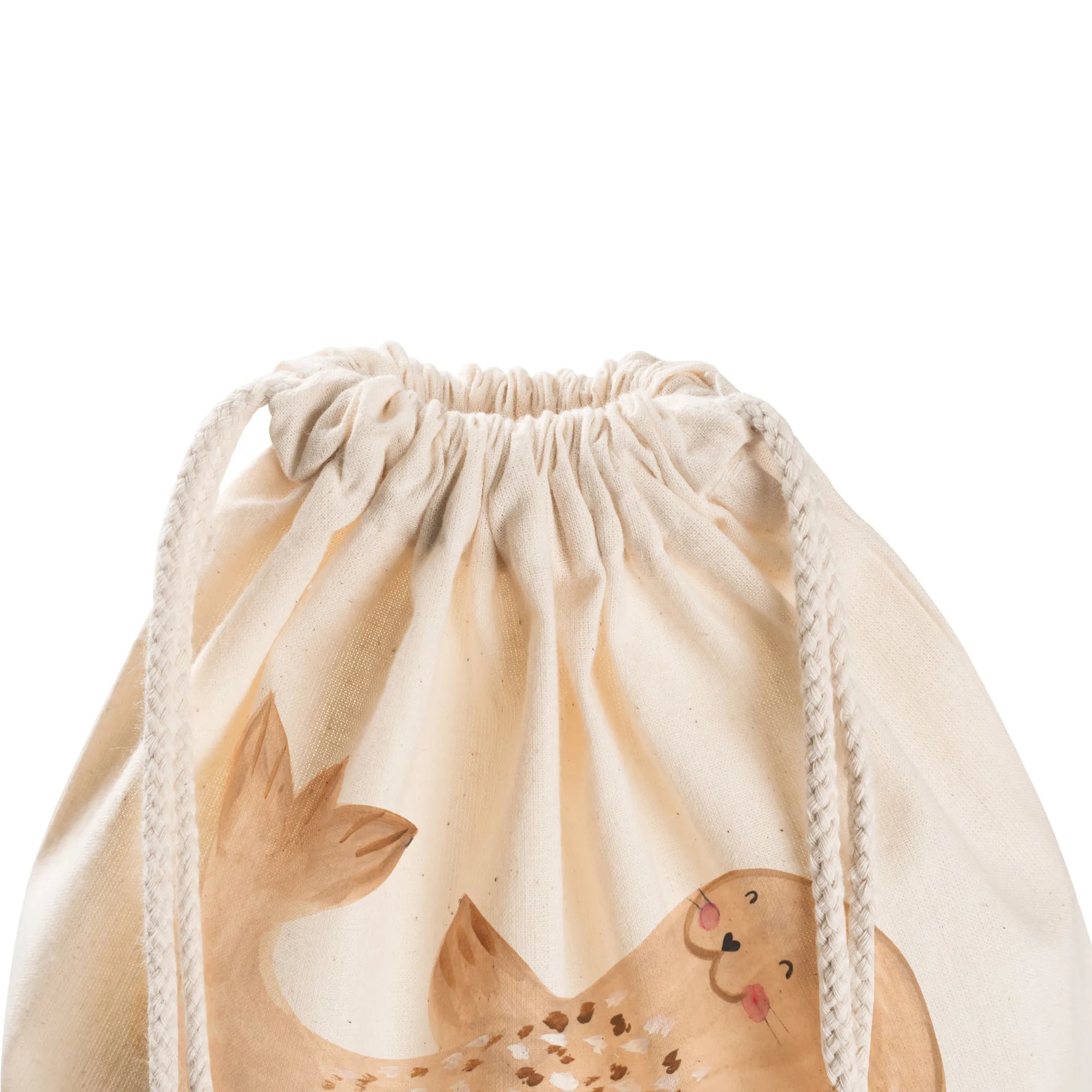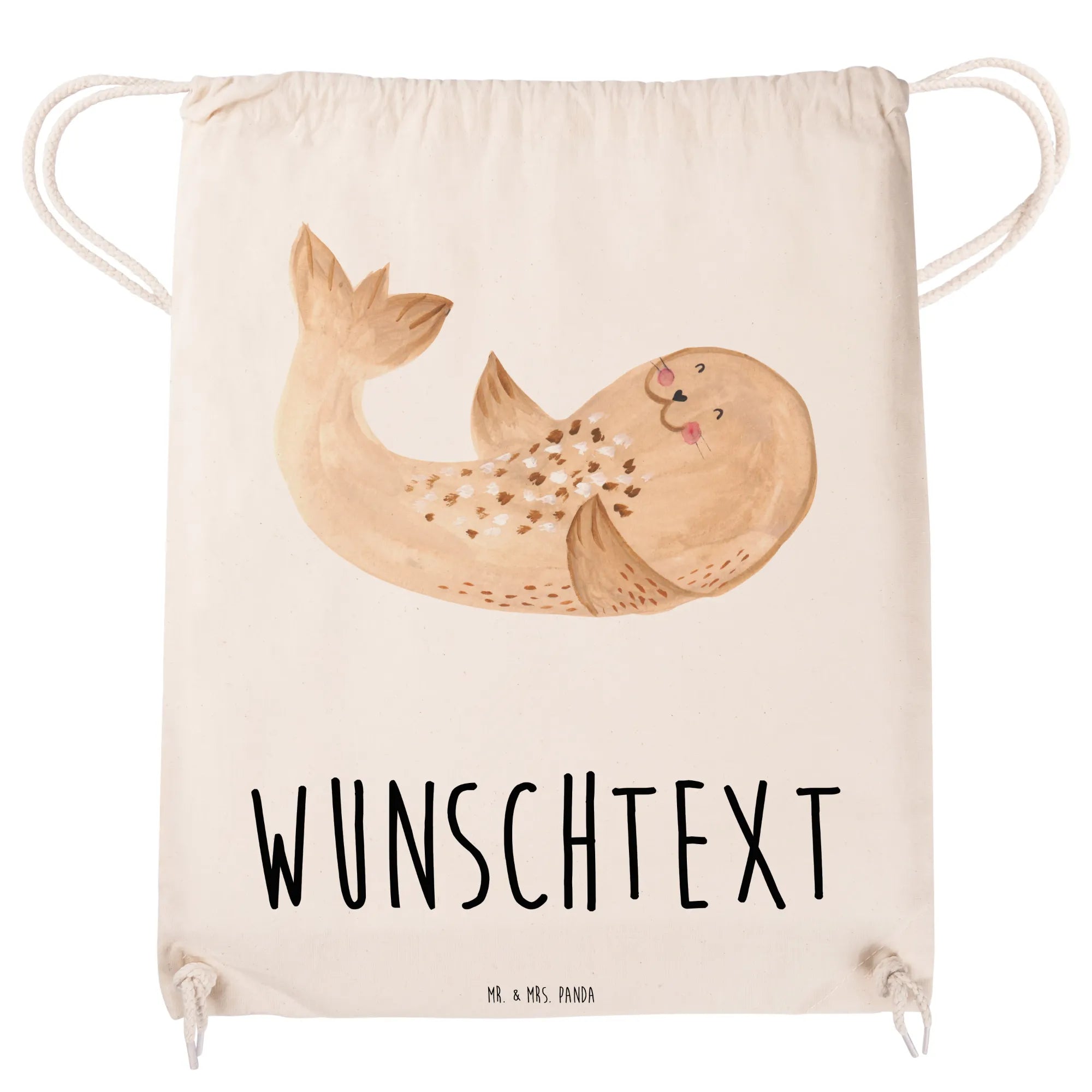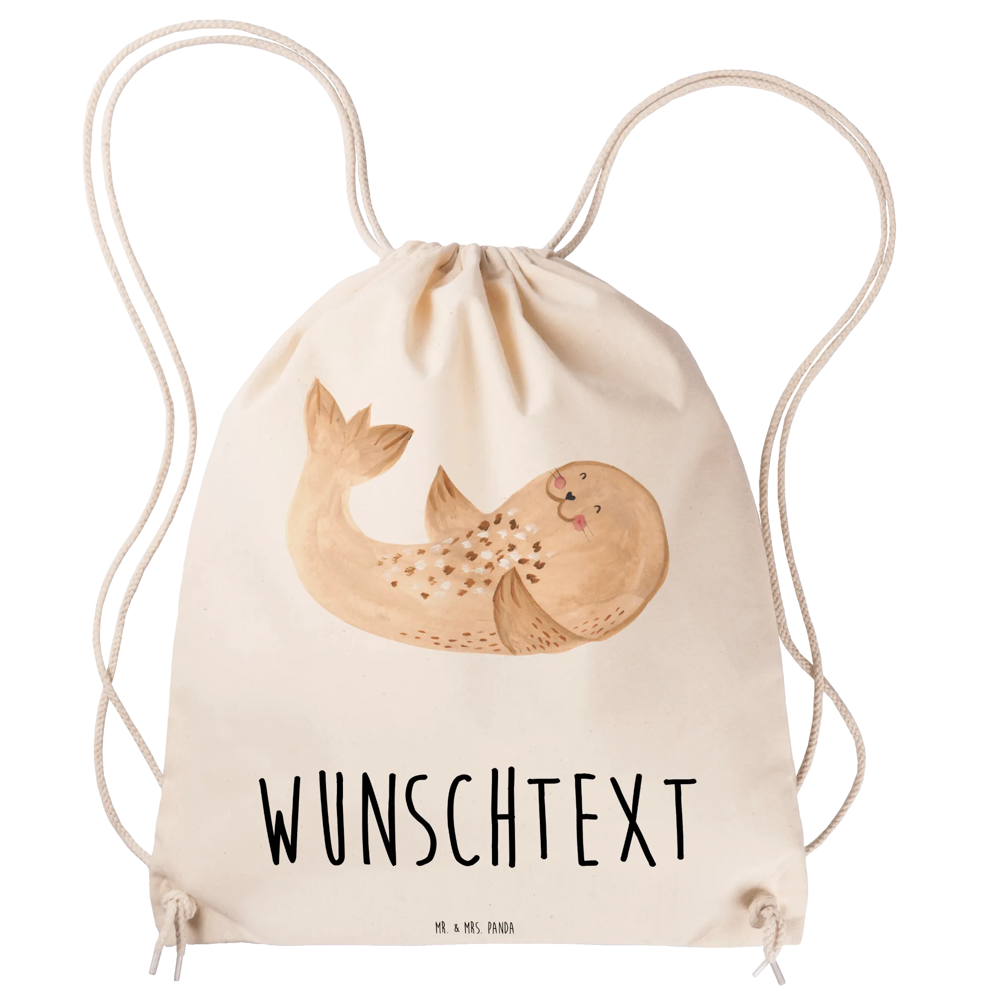Mache es dir gemütlich wie unsere Robbe: Der personalisierte Sportbeutel „Robbe liegend“ aus der Small World Kollektion von Mr. & Mrs. Panda bringt Meereszauber und gute Laune in deinen Alltag. 🦭🌊