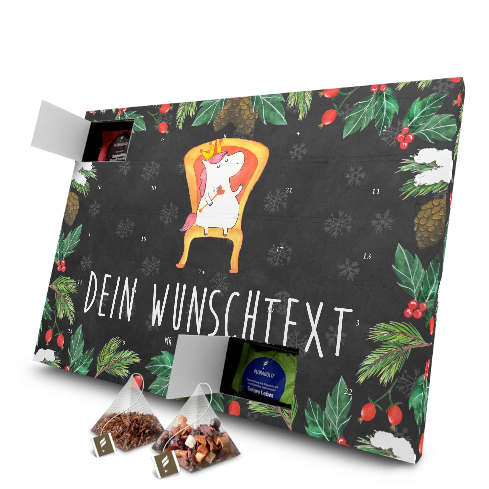 Personalisierter Tee Adventskalender Einhorn Prinzessin - Kreidetafel