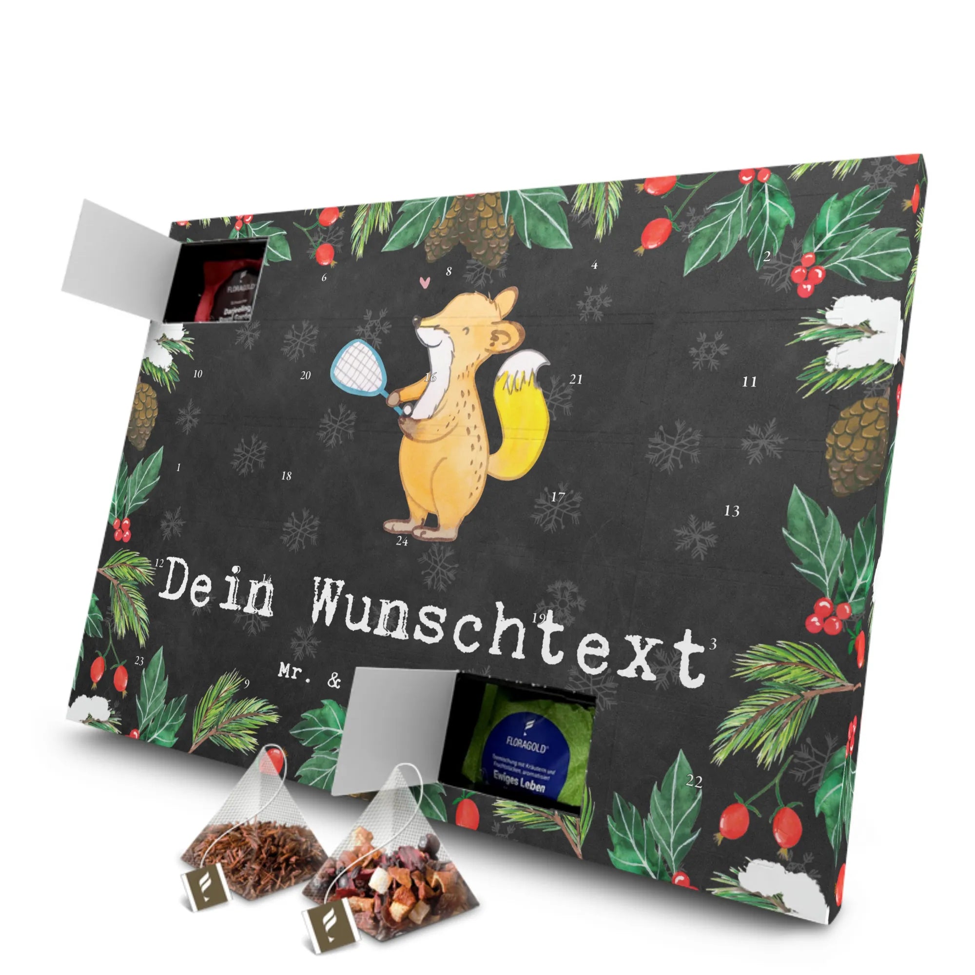 Personalisierter Tee Adventskalender Fuchs Squash spielen – Mr. & Mrs. Panda