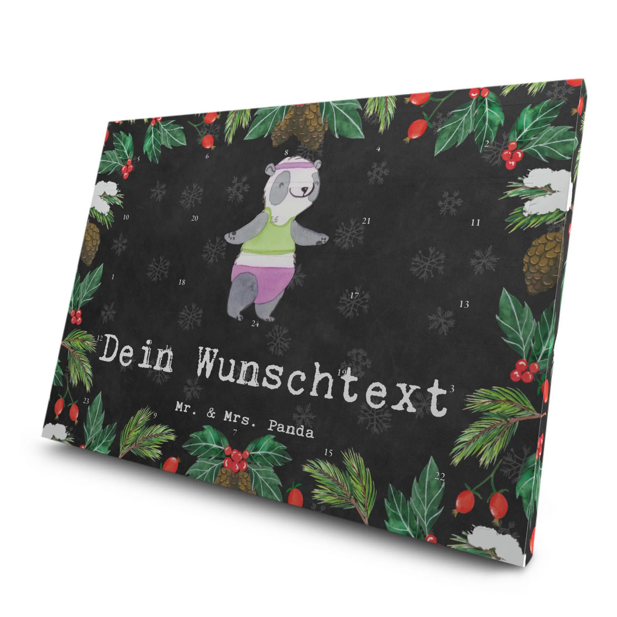 Personalisierter Tee Adventskalender Panda Aerobic - Kreidetafel