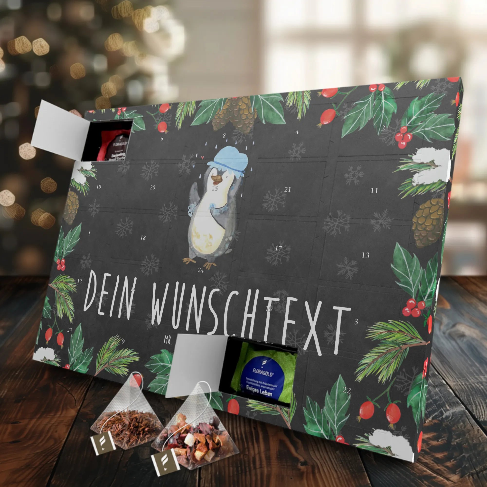 Der personalisierte Tee Adventskalender mit dem niedlichen Pinguin-Motiv ist das perfekte Geschenk für jeden Teeliebhaber und Pinguin-Fan! 🐧