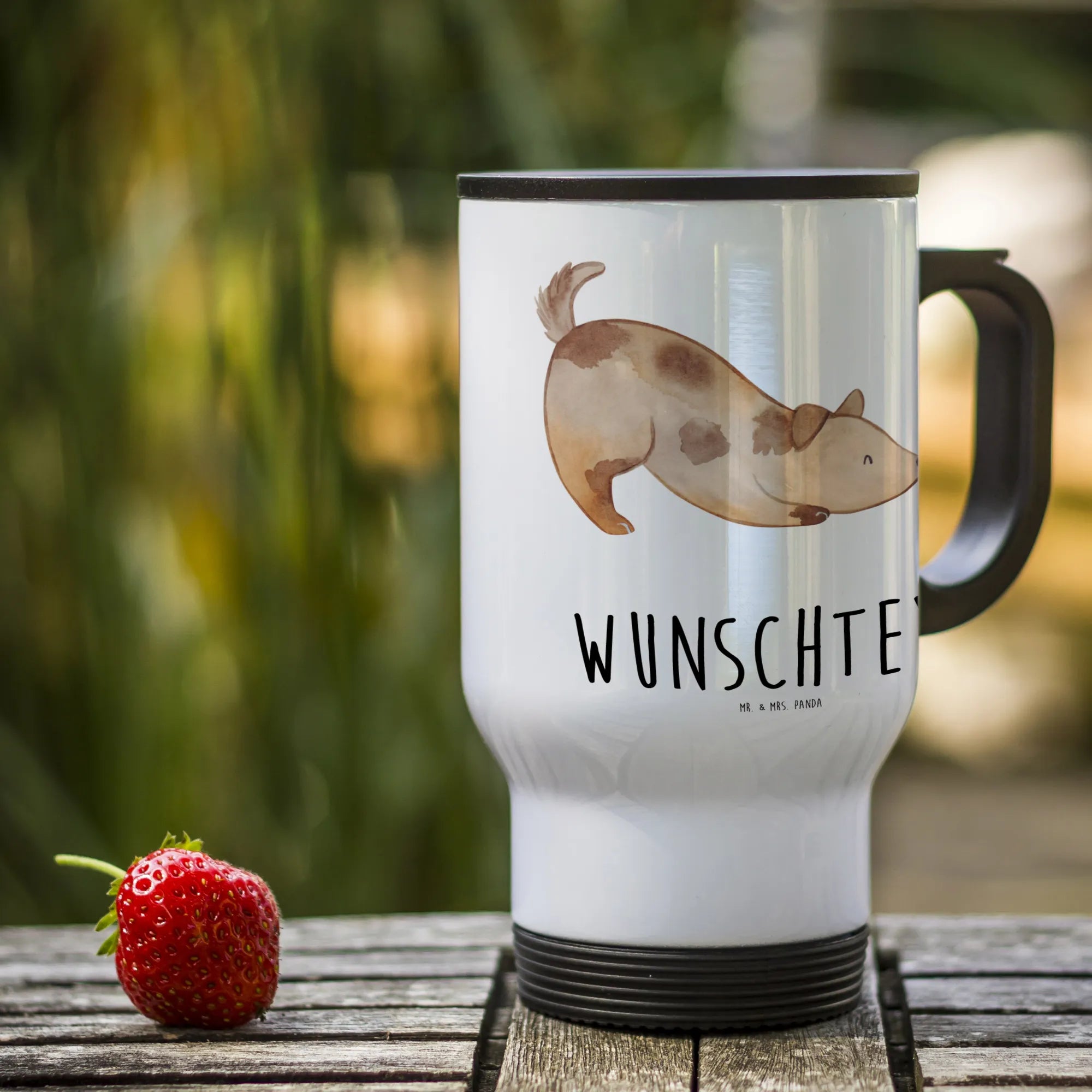 Schaffe schöne Momente mit jedem Schluck aus diesem charmanten Thermobecher von Mr. & Mrs. Panda! Sei es für dich selbst oder als Geschenk für einen anderen Tierfreund, mit diesem individuell gestaltbaren Thermobecher liegst du immer richtig! Verleihe deinem Getränk einen persönlichen Touch und genieße warme Momente mit deinem liebsten Hund in der Hand.