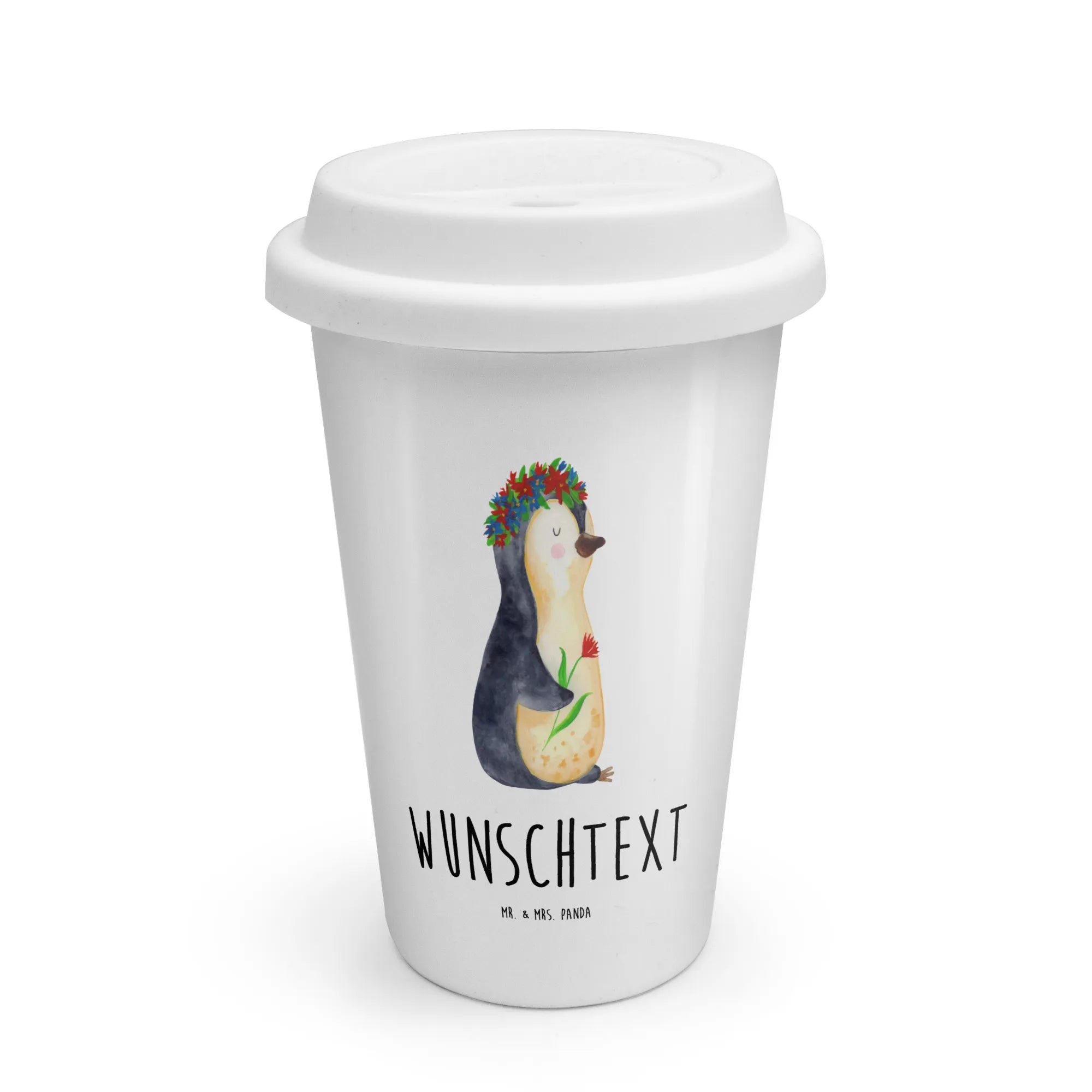 Personalisierter To Go Becher Pinguin Blumen – Mr. & Mrs. Panda