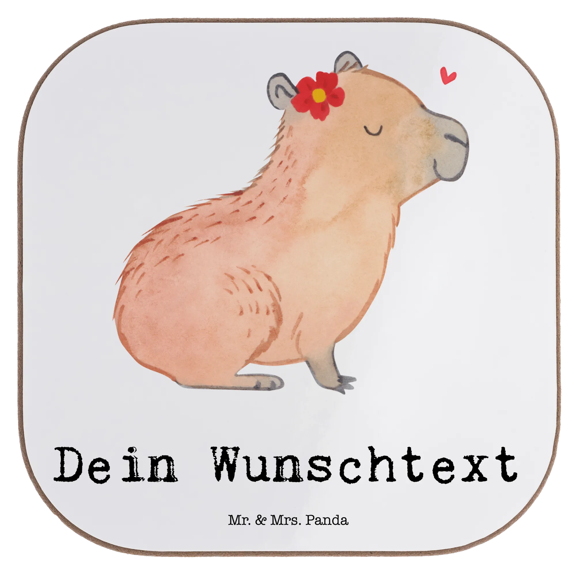 Entdecke unseren personalisierten Untersetzer mit dem zauberhaften Motiv "Capybara Blume" aus der beliebten Kollektion Small World von Mr. & Mrs. Panda! Dieser wunderschöne quadratische Untersetzer ist nicht nur ein praktisches Accessoire für Deinen Tisch, sondern auch ein echter Blickfang. Bedruckt mit einem hinreißenden, handgezeichneten Capybara, das mit einer fröhlichen roten Blume im Haar und einem sanften Lächeln gestaltet ist, bringt dieser Untersetzer Gute Laune in jedes Zuhause. Das Capybara strahlt Ruhe und Zufriedenheit aus, während das kleine Herz darüber die liebevolle Atmosphäre perfekt unterstreicht. Verleih Deinem Tisch mit diesem Untersetzer einen Hauch von Wärme und Freundlichkeit!