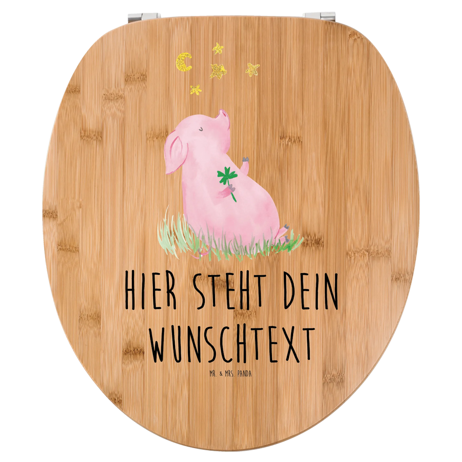 Personalisierter WC Sitz Motiv Glücksschwein - Bambus