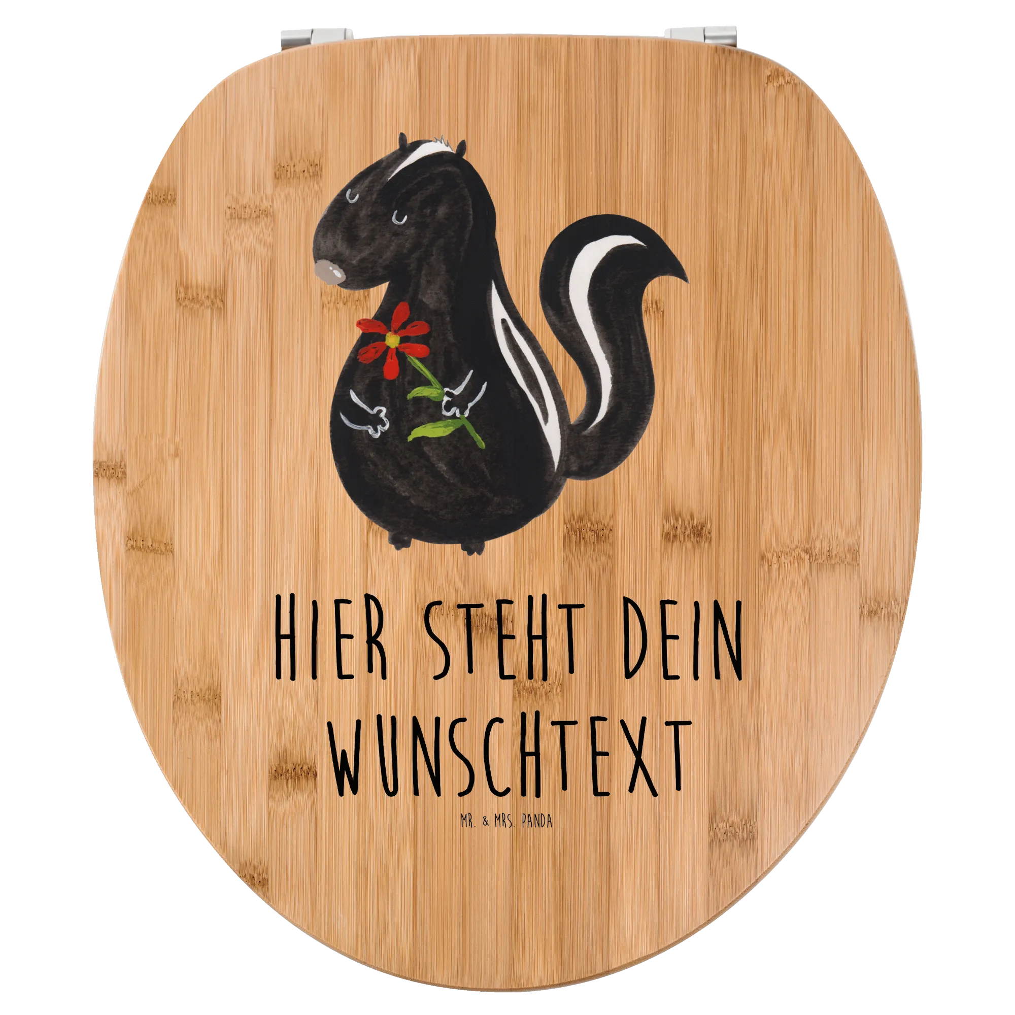 Personalisierter WC Sitz Motiv Stinktier Blume - Bambus