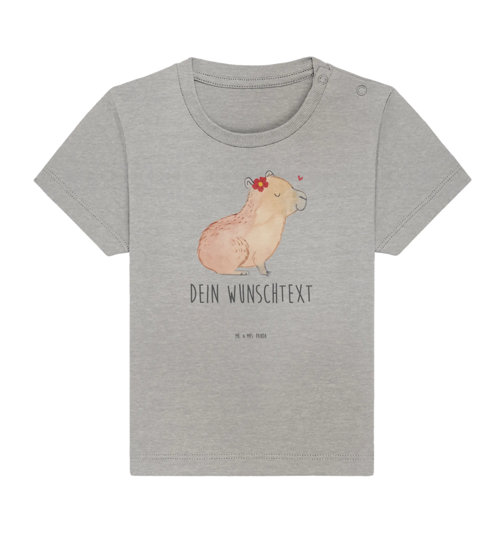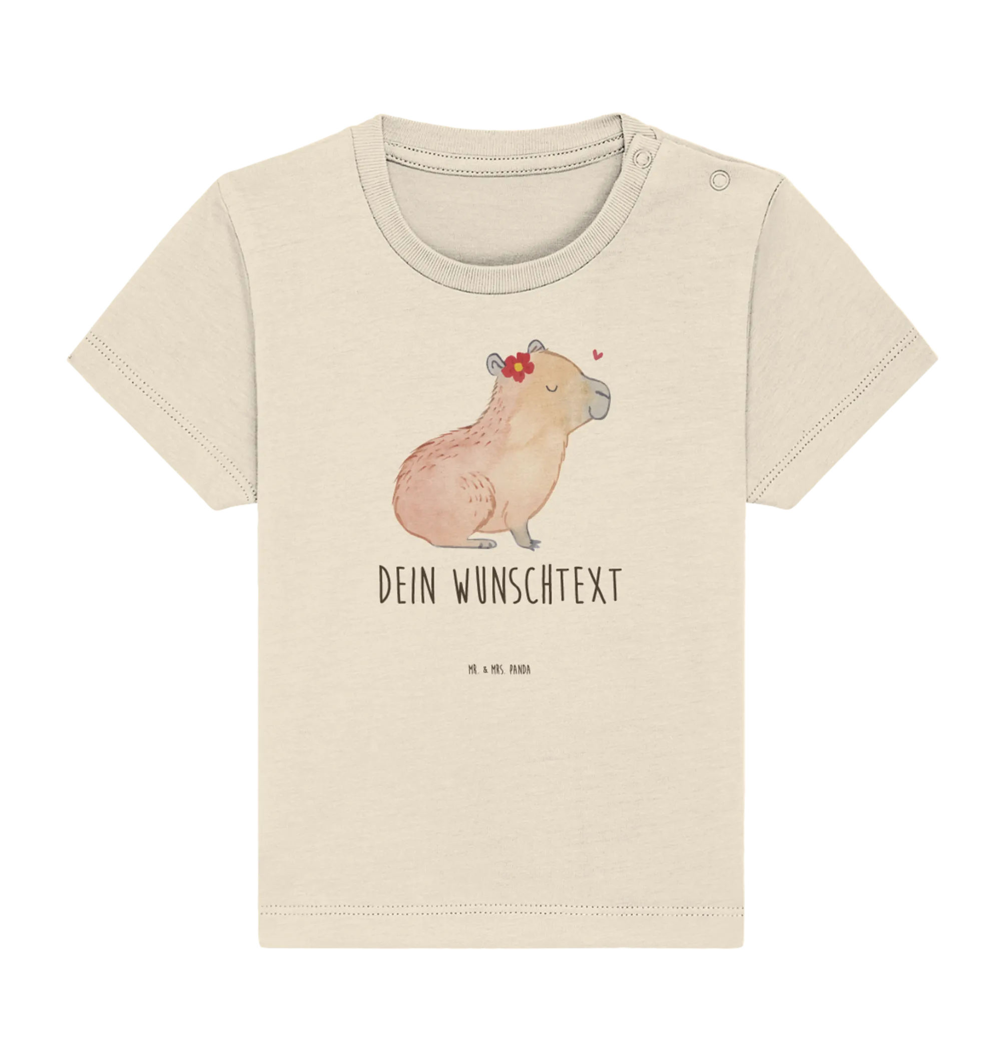Das personalisierte Baby T-Shirt mit dem liebevollen Motiv 'Capybara Blume' aus der zauberhaften Kollektion Small World von Mr. & Mrs. Panda ist mehr als nur ein Kleidungsstück – es ist ein Statement!