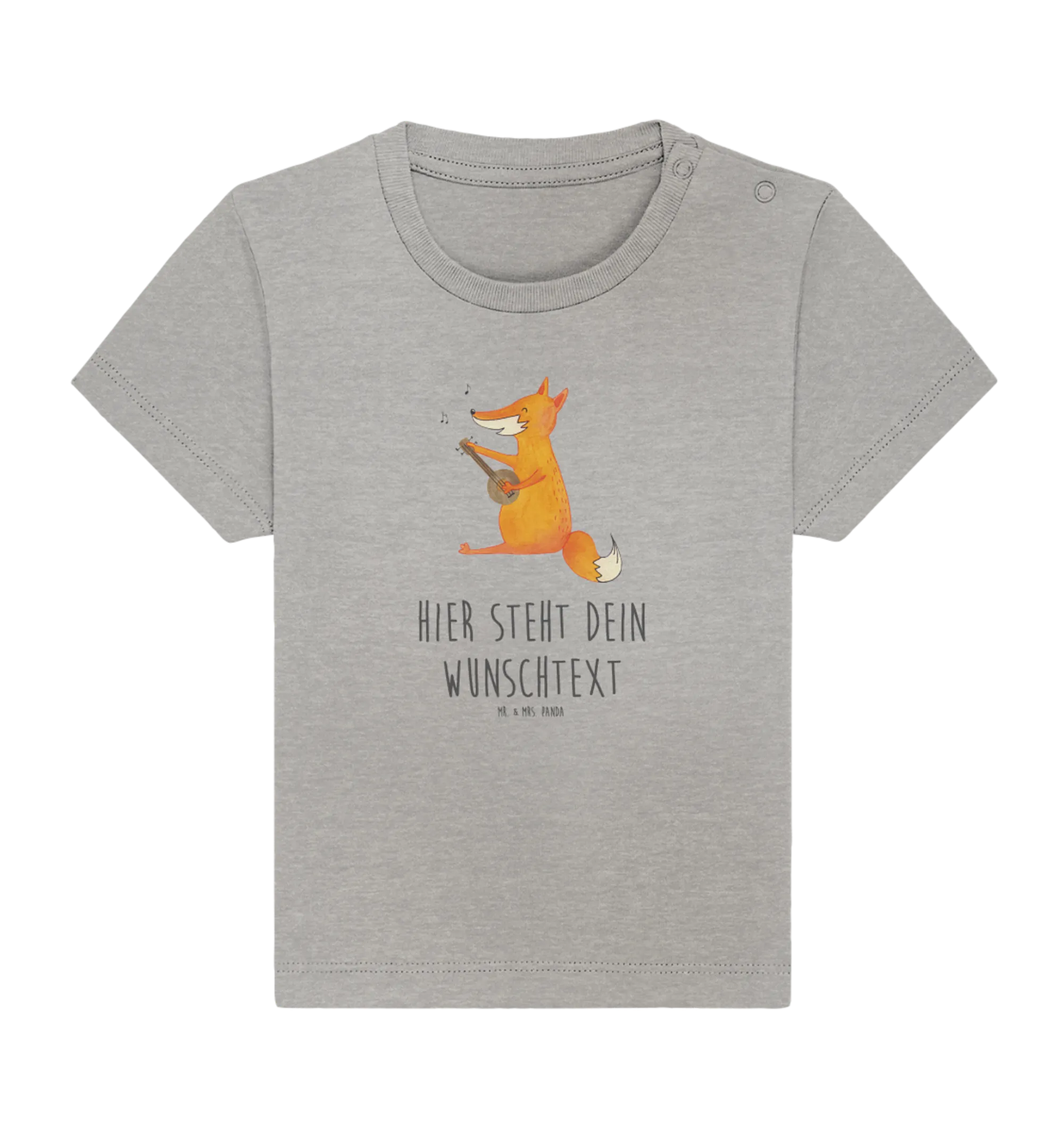 Personalisiertes Baby Shirt Fuchs Gitarre - 12. - 18. Monat - Heather Grey