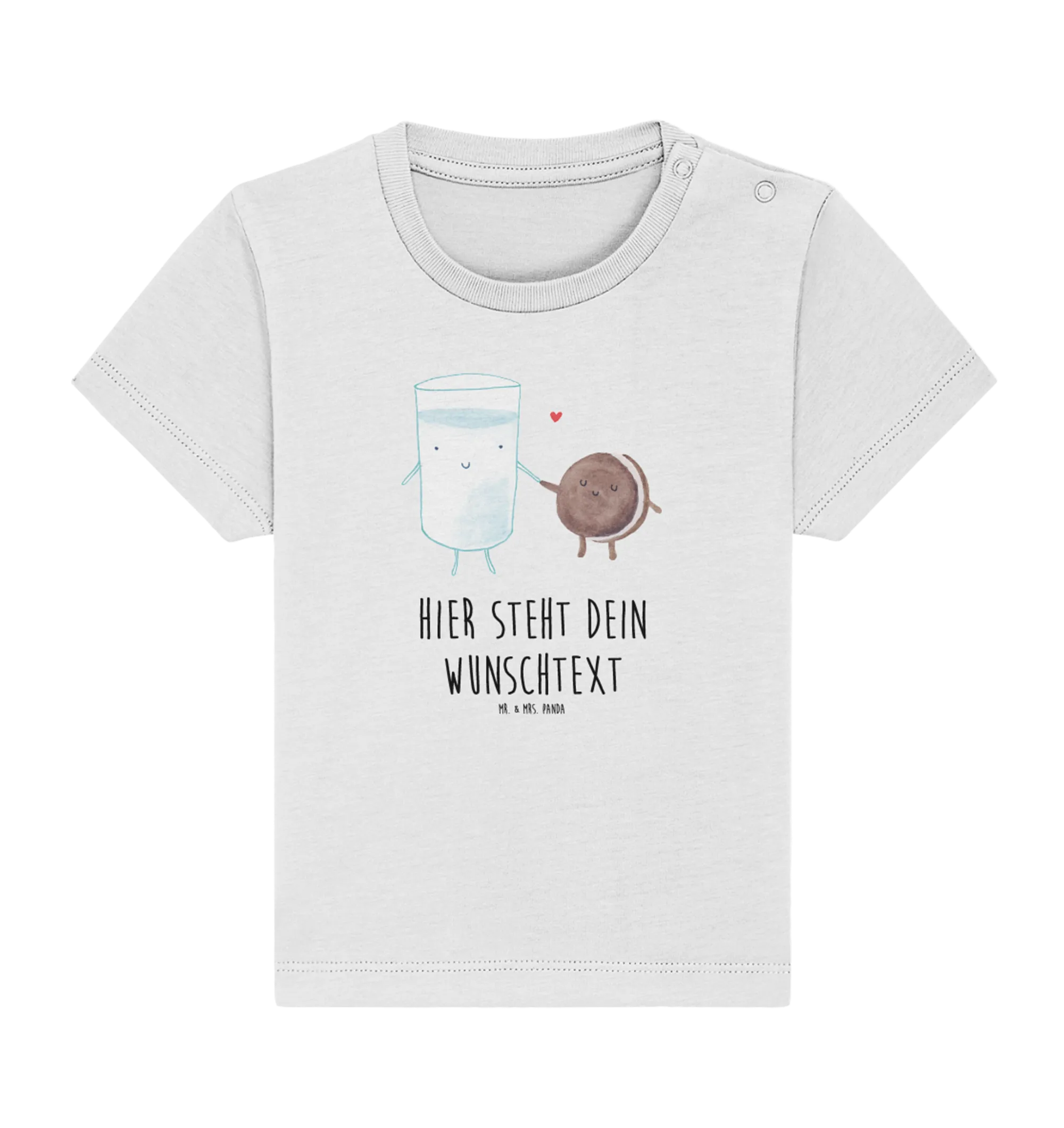 Das personalisierte Baby T-Shirt "Milch & Keks" von Mr. & Mrs. Panda ist das perfekte Geschenk für kleine Naschkatzen und ihre Eltern! Das bezaubernde Motiv zeigt ein süßes Glas Milch, das sanft an einen Keks lehnt. Zusammen halten sie Händchen und vermitteln so eine herzerwärmende Botschaft: "Wir sind das perfekte Paar!"