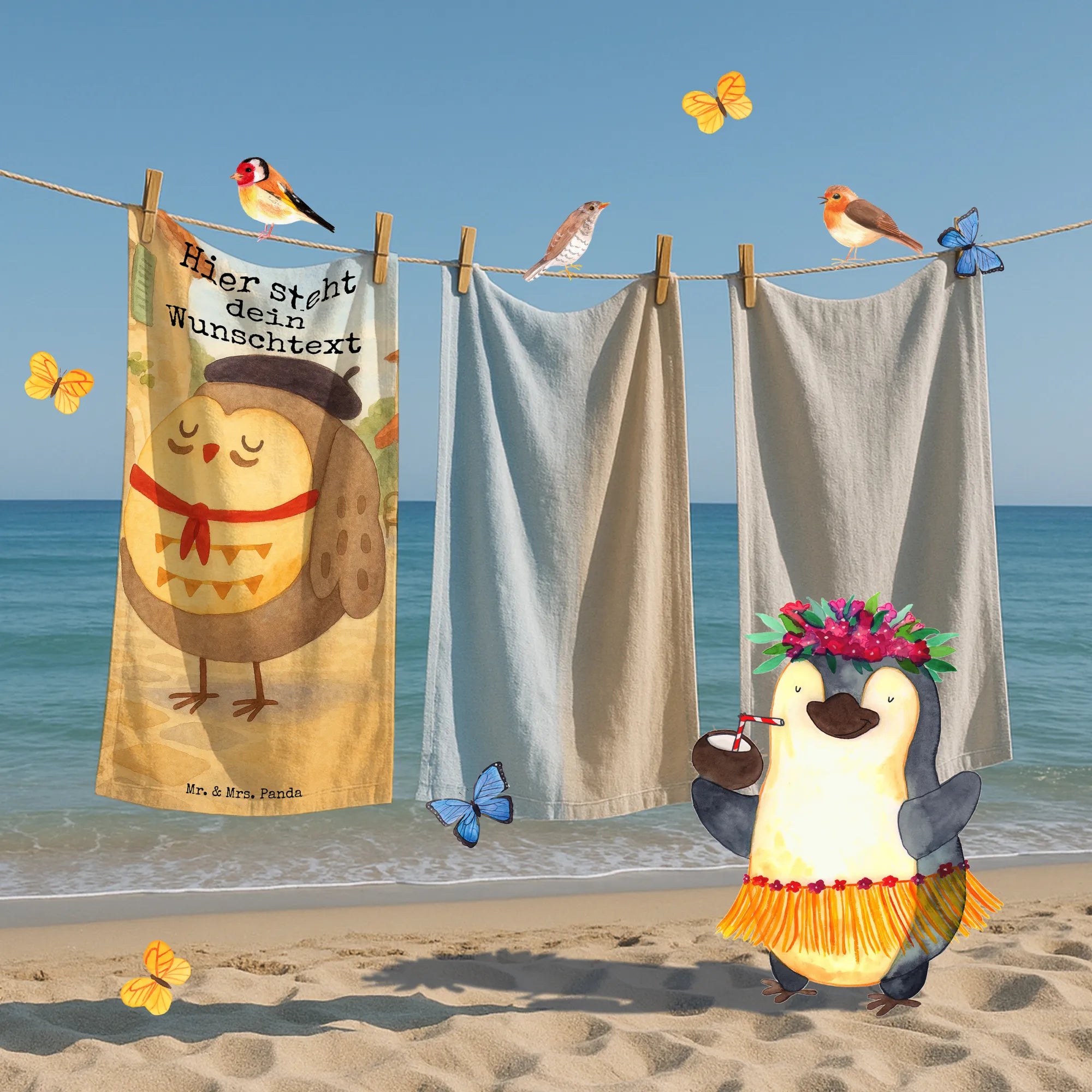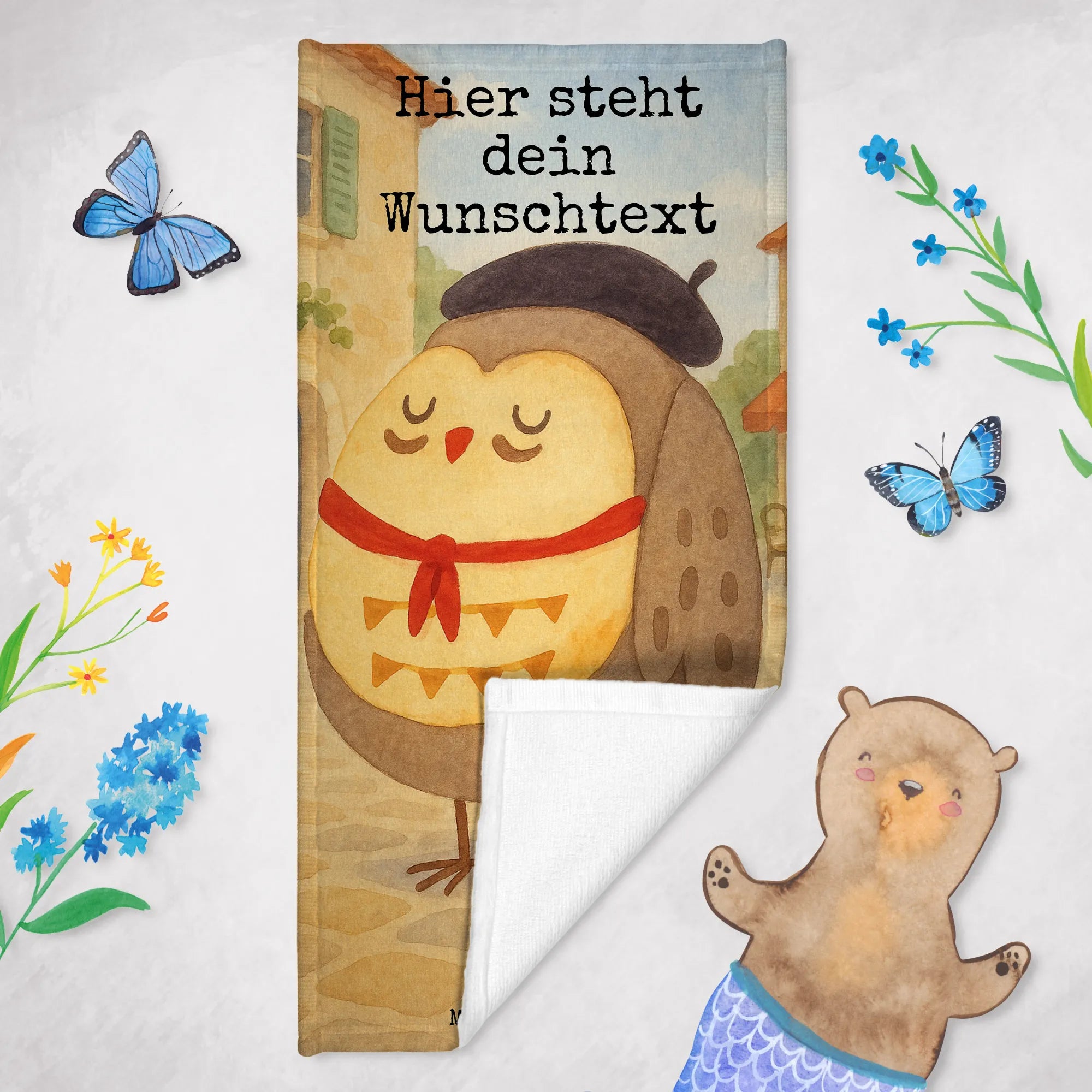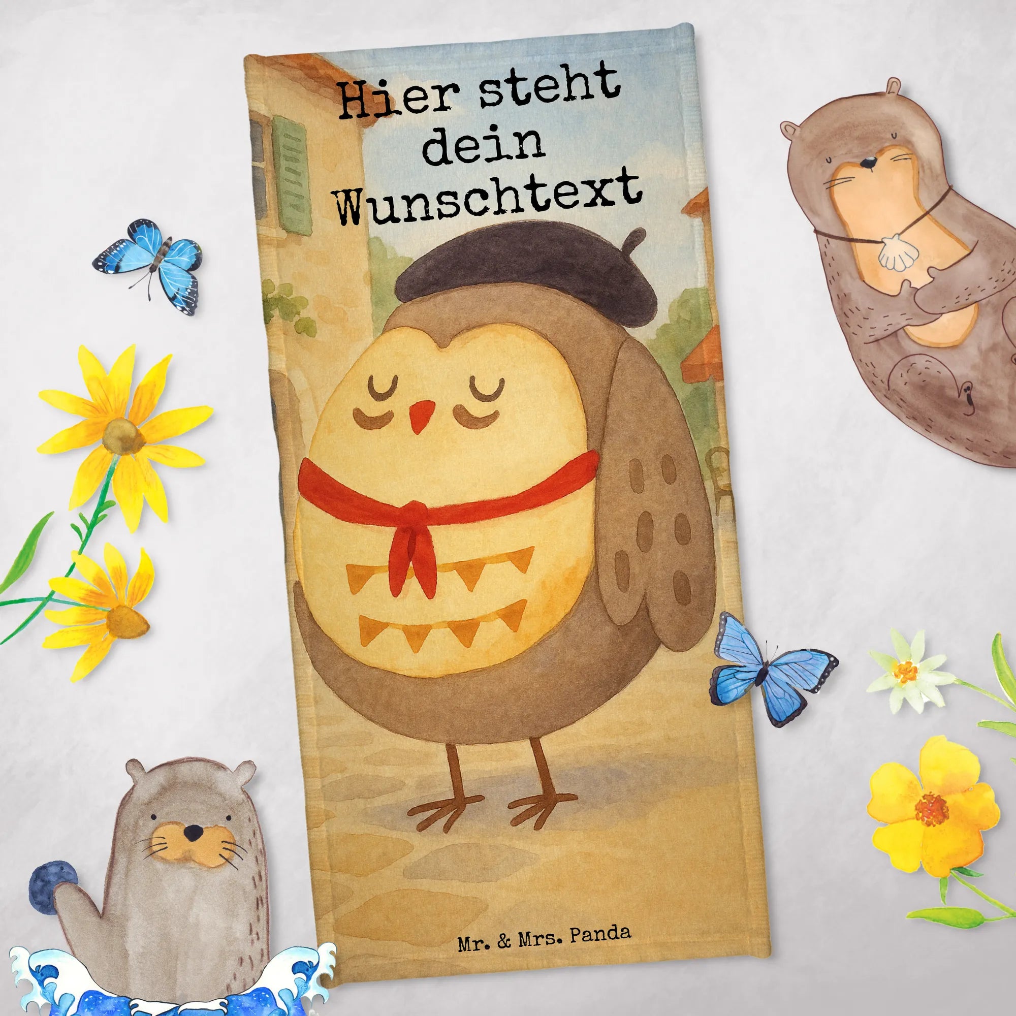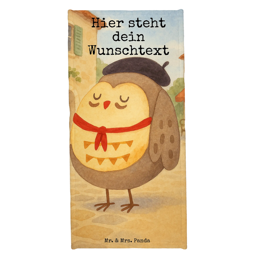 Personalisiertes Badehandtuch Eule Frankreich Design – Mr. & Mrs. Panda
