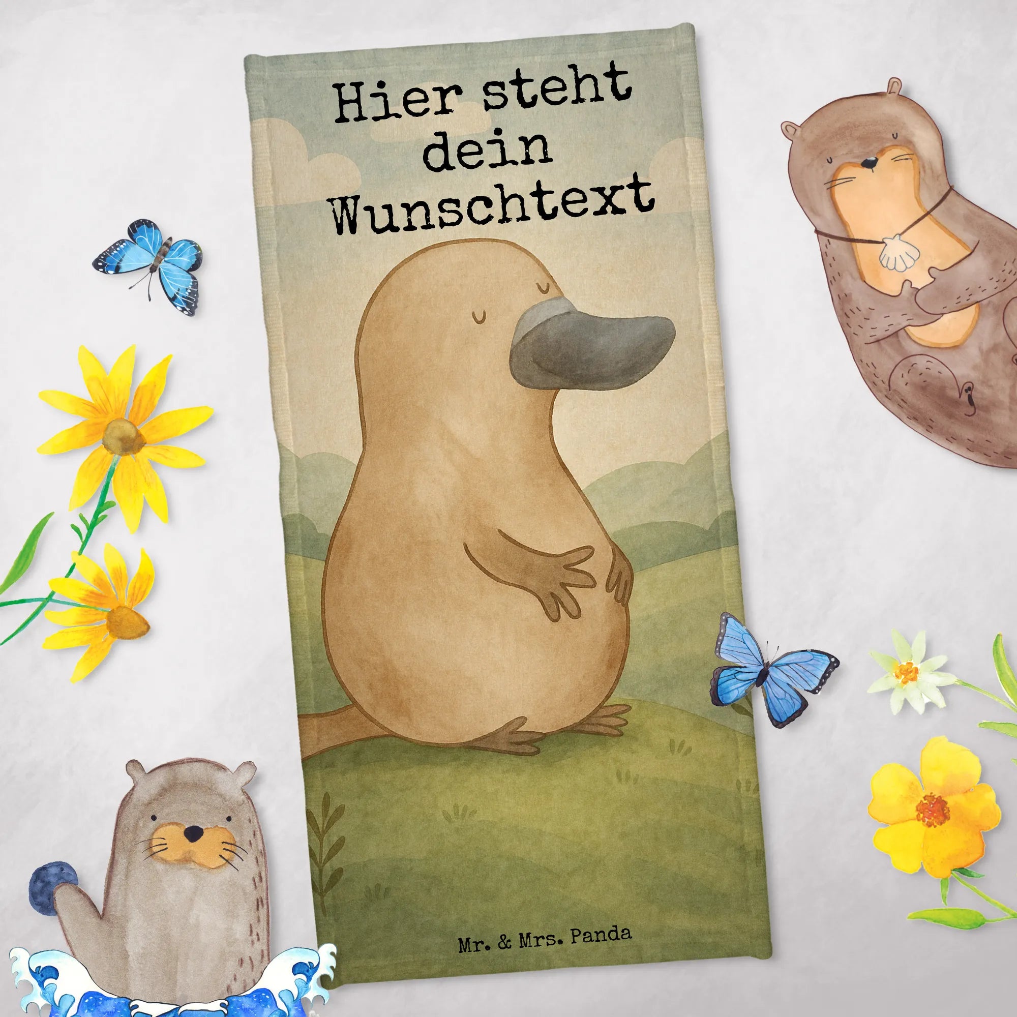 Personalisiertes Badehandtuch Schnabeltier Mut Design