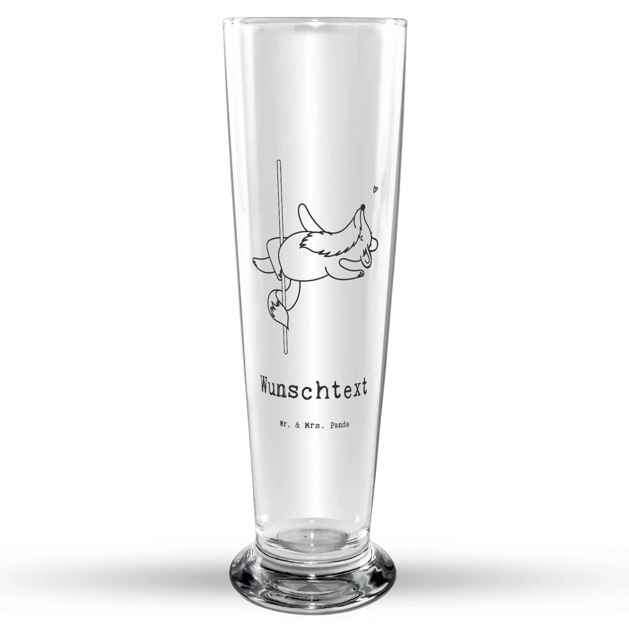 Das personalisierte Bierglas "Fuchs Poledance Tage" von Mr. & Mrs. Panda ist das ideale Geschenk für alle, die die Kombination aus Sport, Hobby und einer Prise Humor lieben. Mit einem einzigartigen Design, das einen stolzen Fuchs zeigt, der elegant an einer Poledance-Stange tanzt, zieht dieses Glas alle Blicke auf sich.