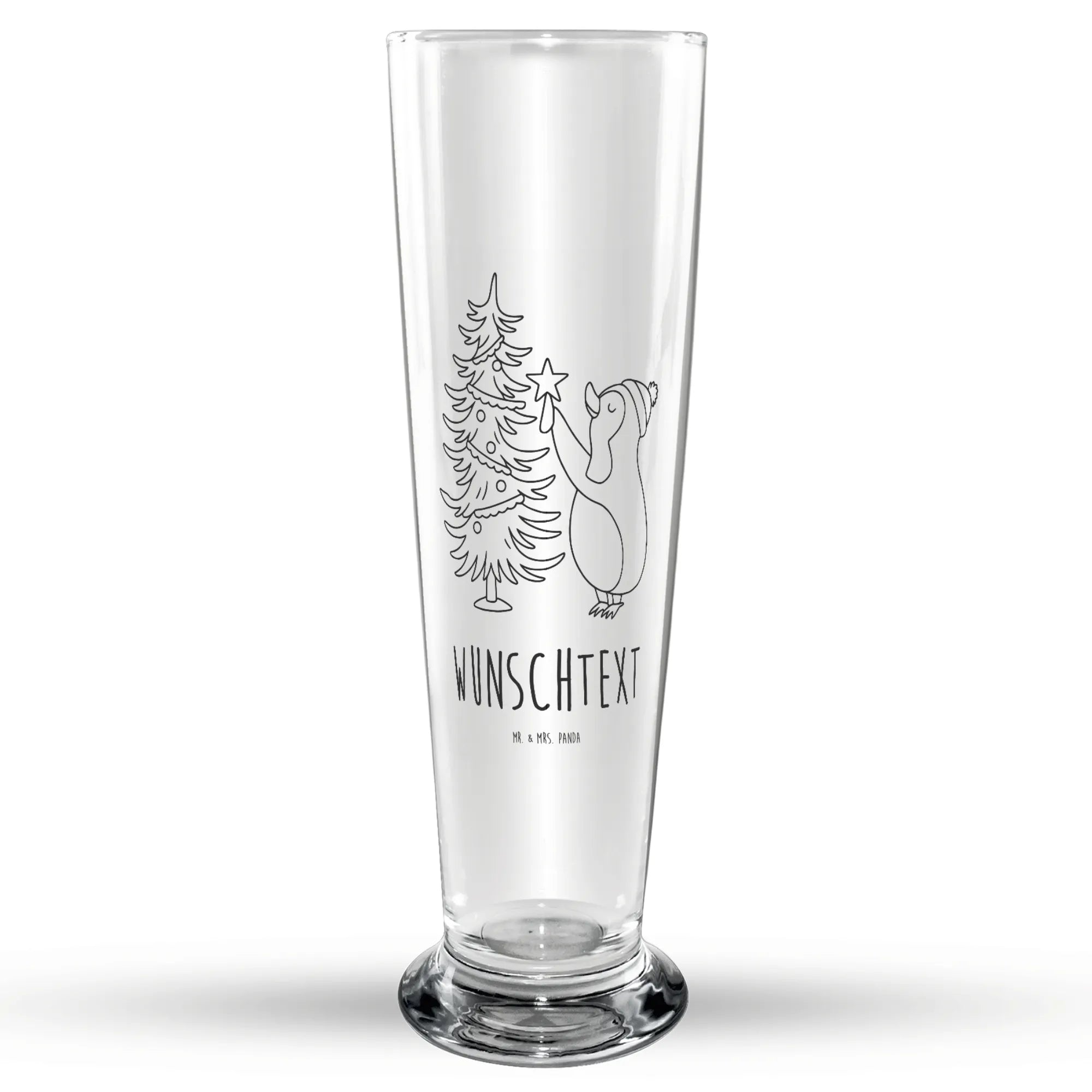 Personalisiertes Bierglas Pinguin Weihnachtsbaum