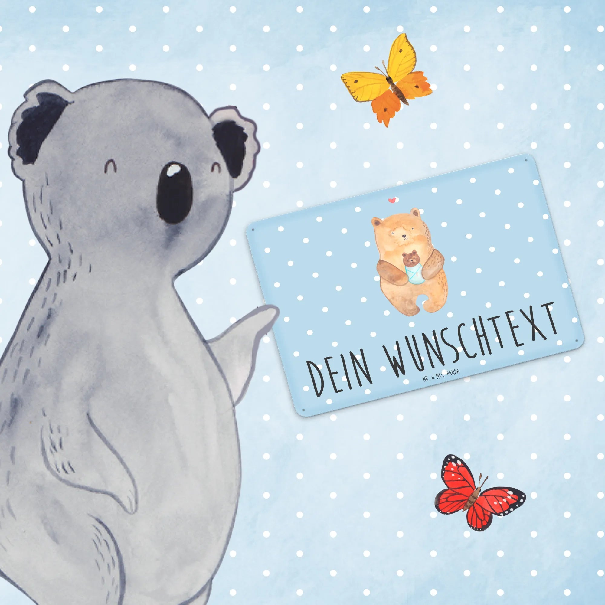 Das personalisierte Blechschild "Bär mit Baby" von Mr. & Mrs. Panda ist das perfekte Geschenk für werdende Eltern, zur Taufe oder zur Geburt eines kleinen Wunders. Dieses bezaubernde Schild strahlt so viel Wärme und Liebe aus, und das süße Motiv eines Bären, der sanft sein Baby hält, wird jedes Herz erweichen.