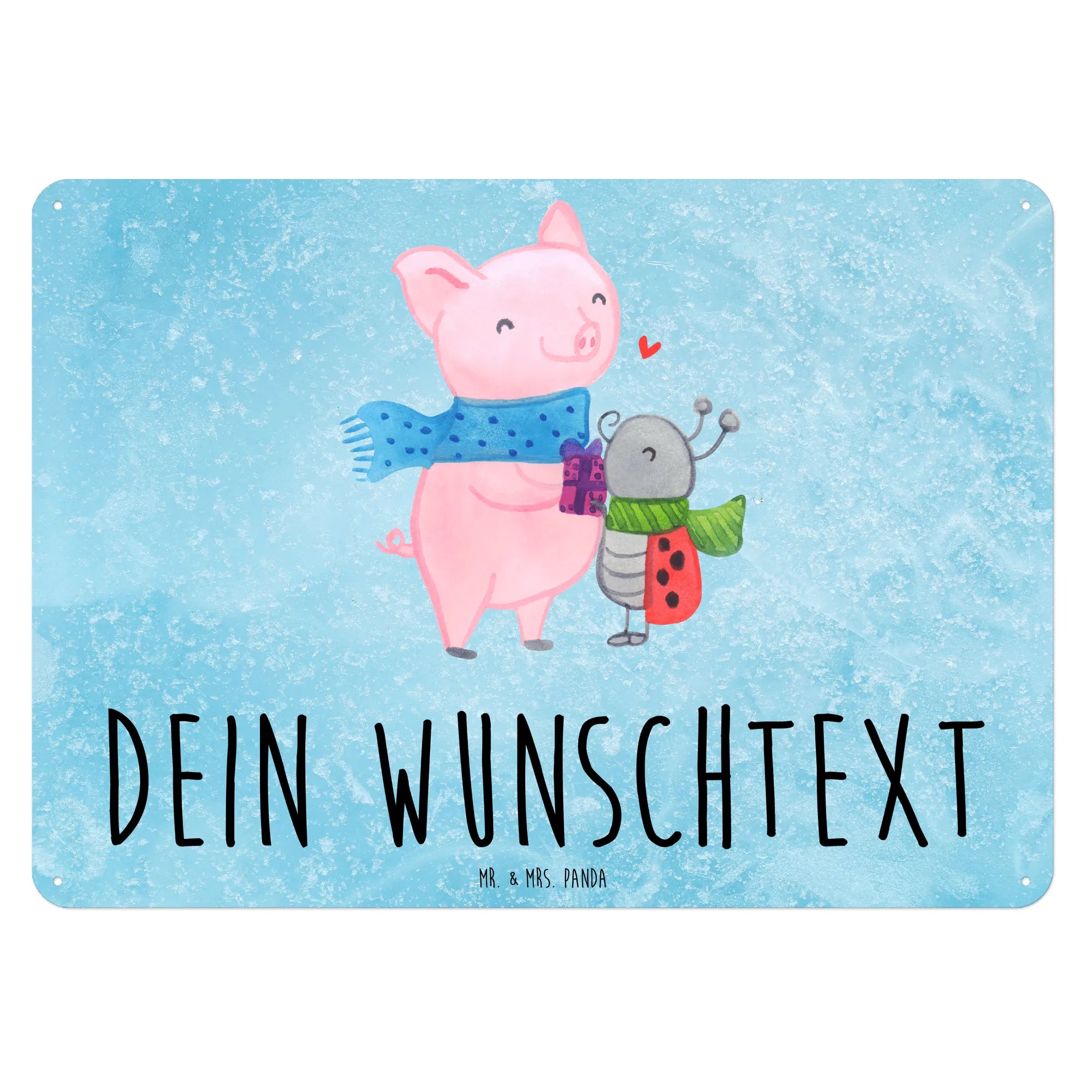 Das Design zeigt unser süßes Glühschwein mit einem luftigen, blau gepunkteten Schal und dem fröhlichen Marienkäfer Smörle, der ebenfalls festlich gekleidet ist. Auf diesem charmanten Schild wird die warme und freundliche Beziehung zwischen diesen beiden Figuren durch ein kleines rotes Herz symbolisiert. Es strahlt Gemütlichkeit und Freude aus, perfekt für die Winter- und Weihnachtszeit!