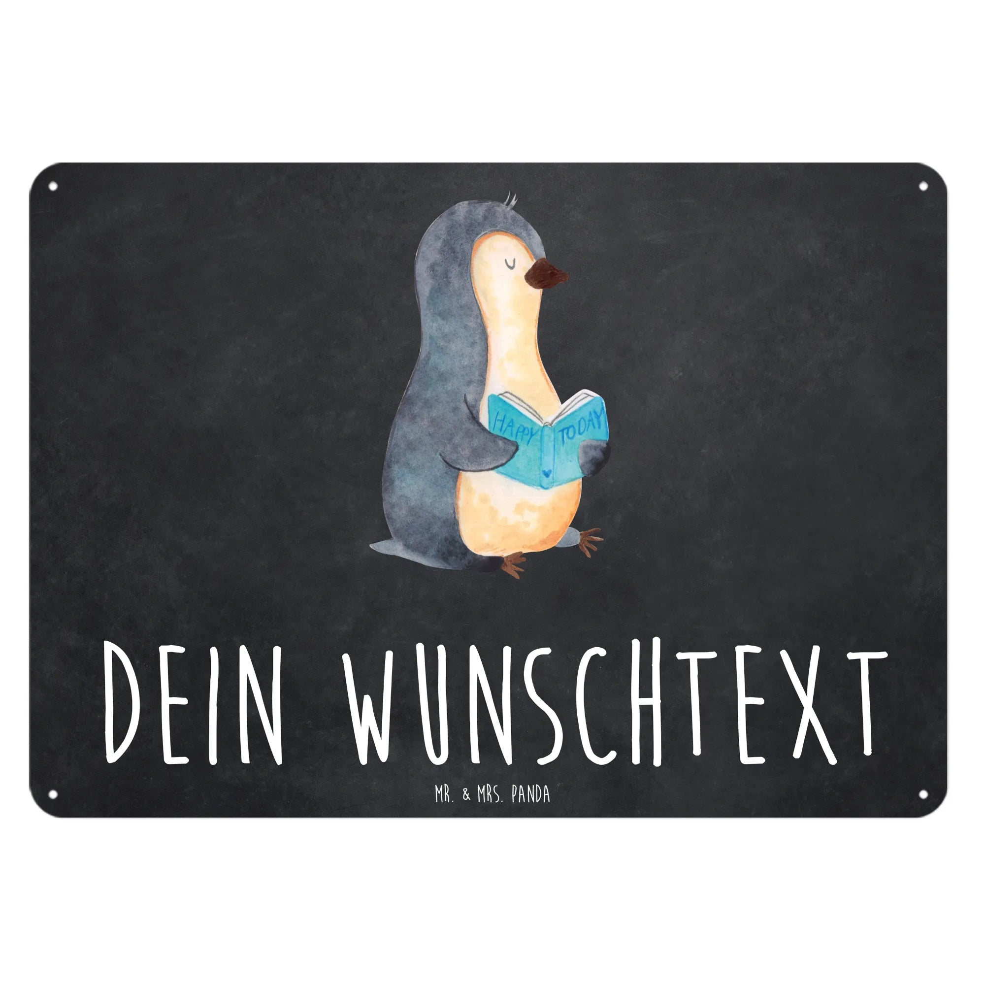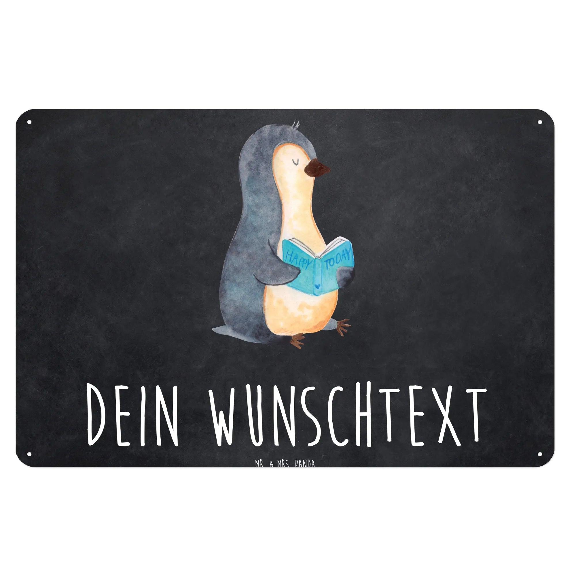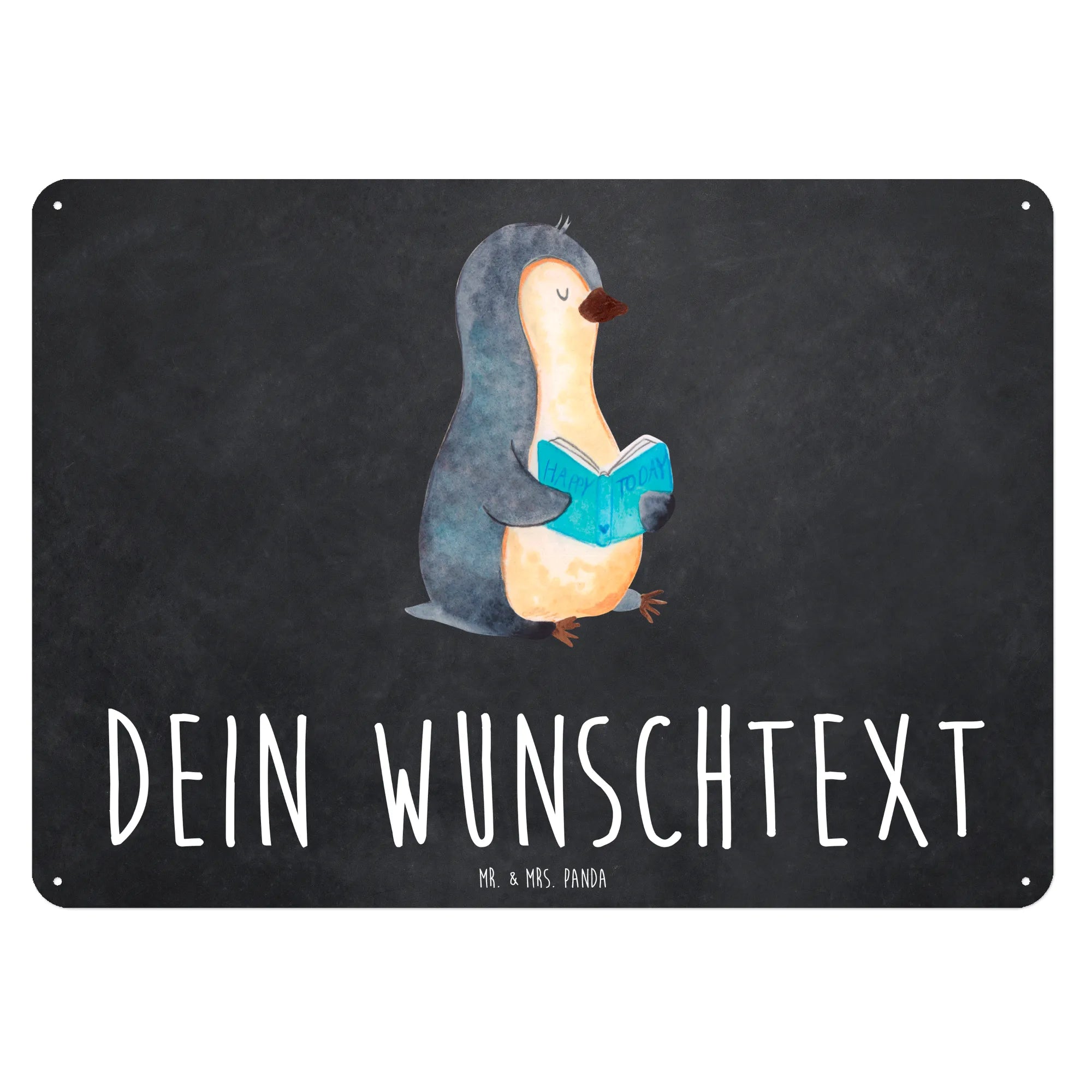Das personalisierte Blechschild "Pinguin Buch" von Mr. & Mrs. Panda ist das perfekte Geschenk für alle Bücherliebhaber und entspannungsfreudigen Menschen. Mit einem liebevoll gestalteten Pinguin, der begeistert ein Buch liest, bringt dieses Schild nicht nur Freude, sondern auch eine charmante Note in jedes Zuhause. Das edle Material aus Stahlblech sorgt dafür, dass es lange schön bleibt und die seidenmatte Oberfläche hebt das Design zusätzlich hervor.
