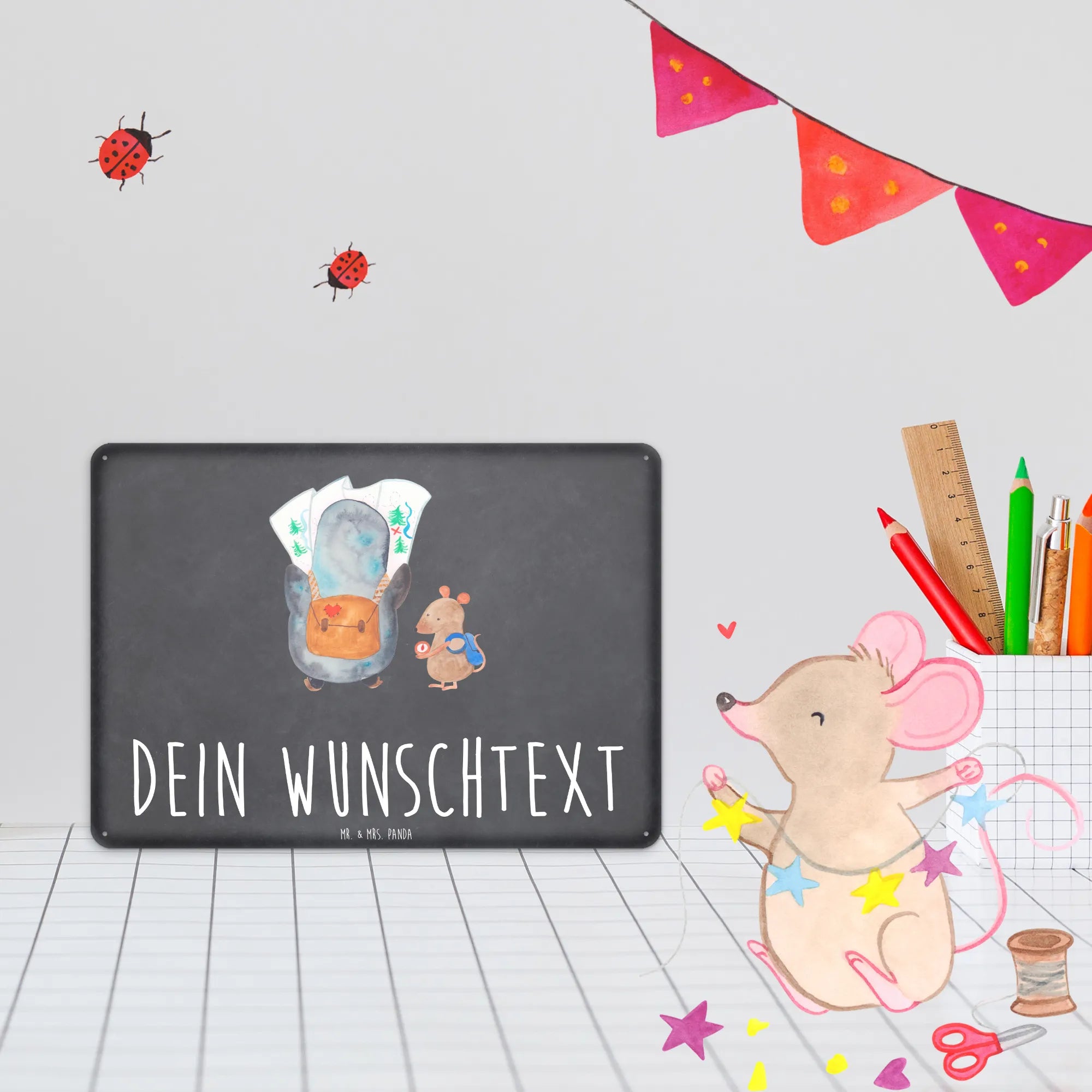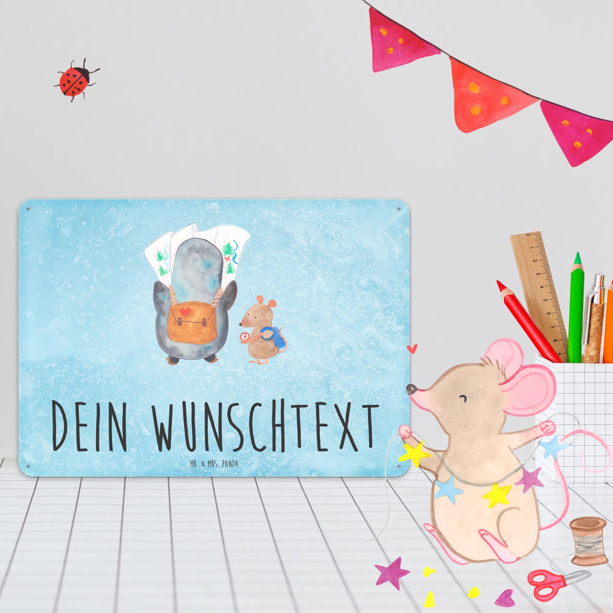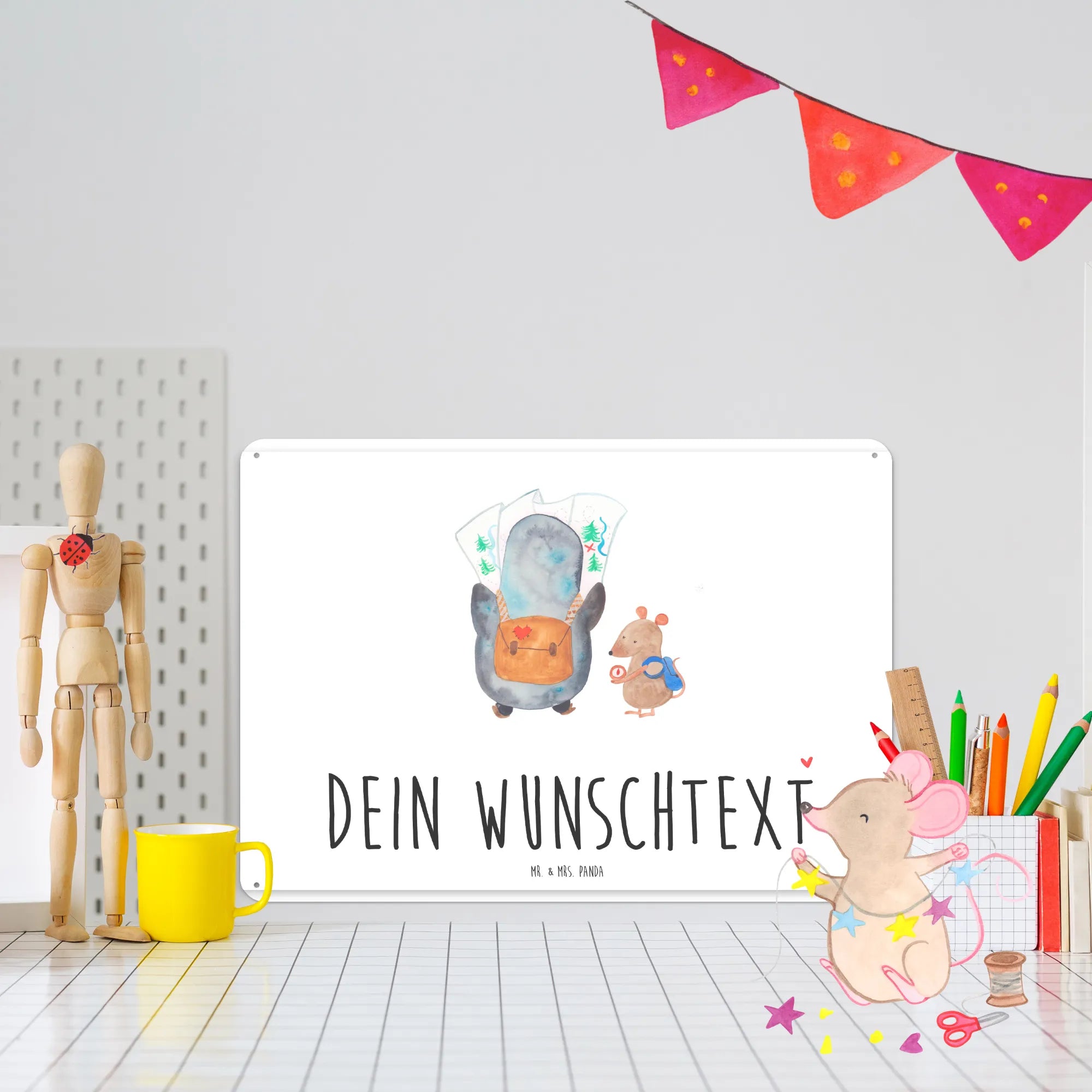 Mr. & Mrs. Panda präsentieren: Personalisiertes Blechschild „Pinguin & Maus Wanderer“