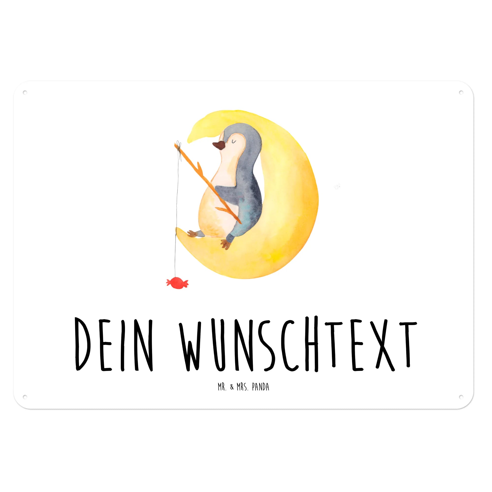 Personalisiertes Blechschild Pinguin Mond - DIN A3 - Weiß
