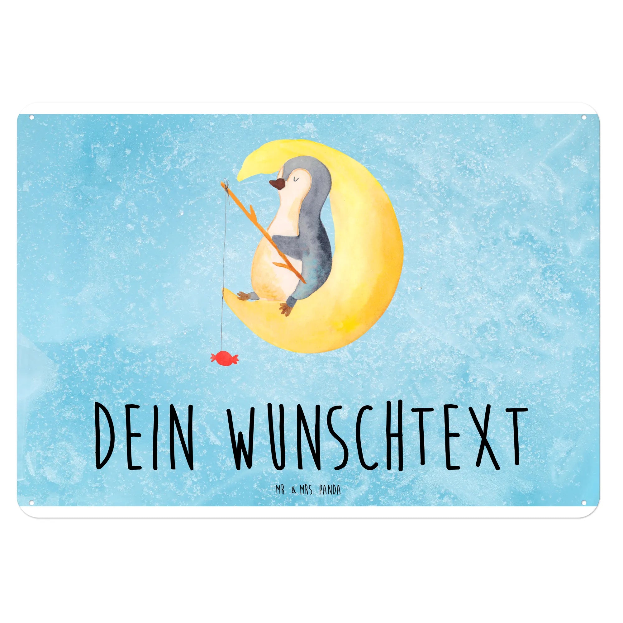 Das personalisierte Blechschild "Pinguin Mond" aus der Pinguin-Kollektion von Mr. & Mrs. Panda ist das ideale Geschenk für alle, die Liebe zu Schlaf und den kleinen Zwischentönen des Lebens schätzen.