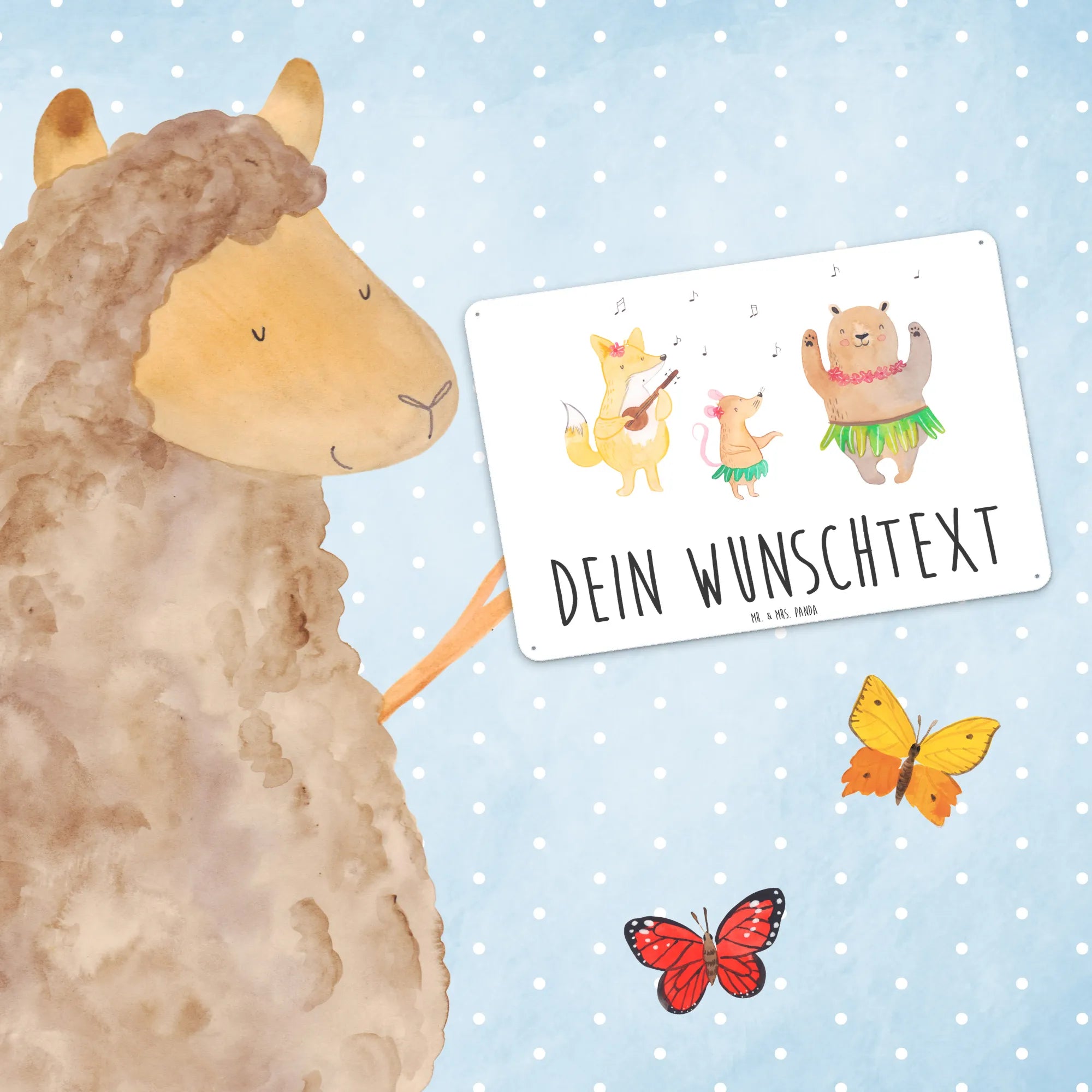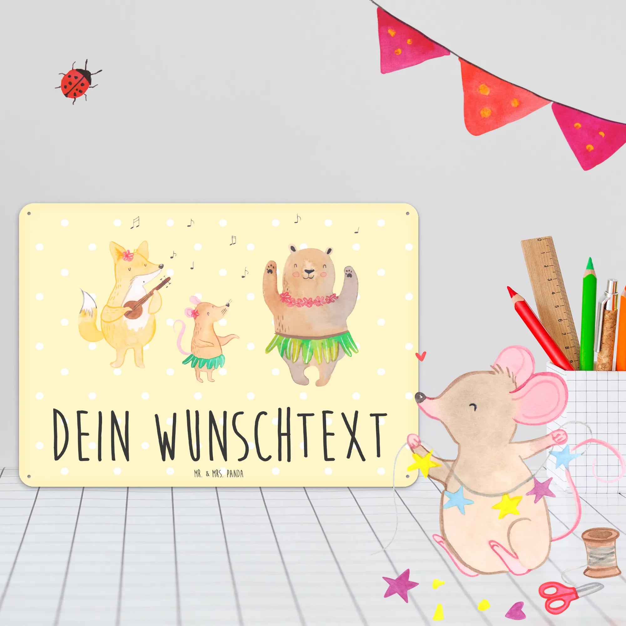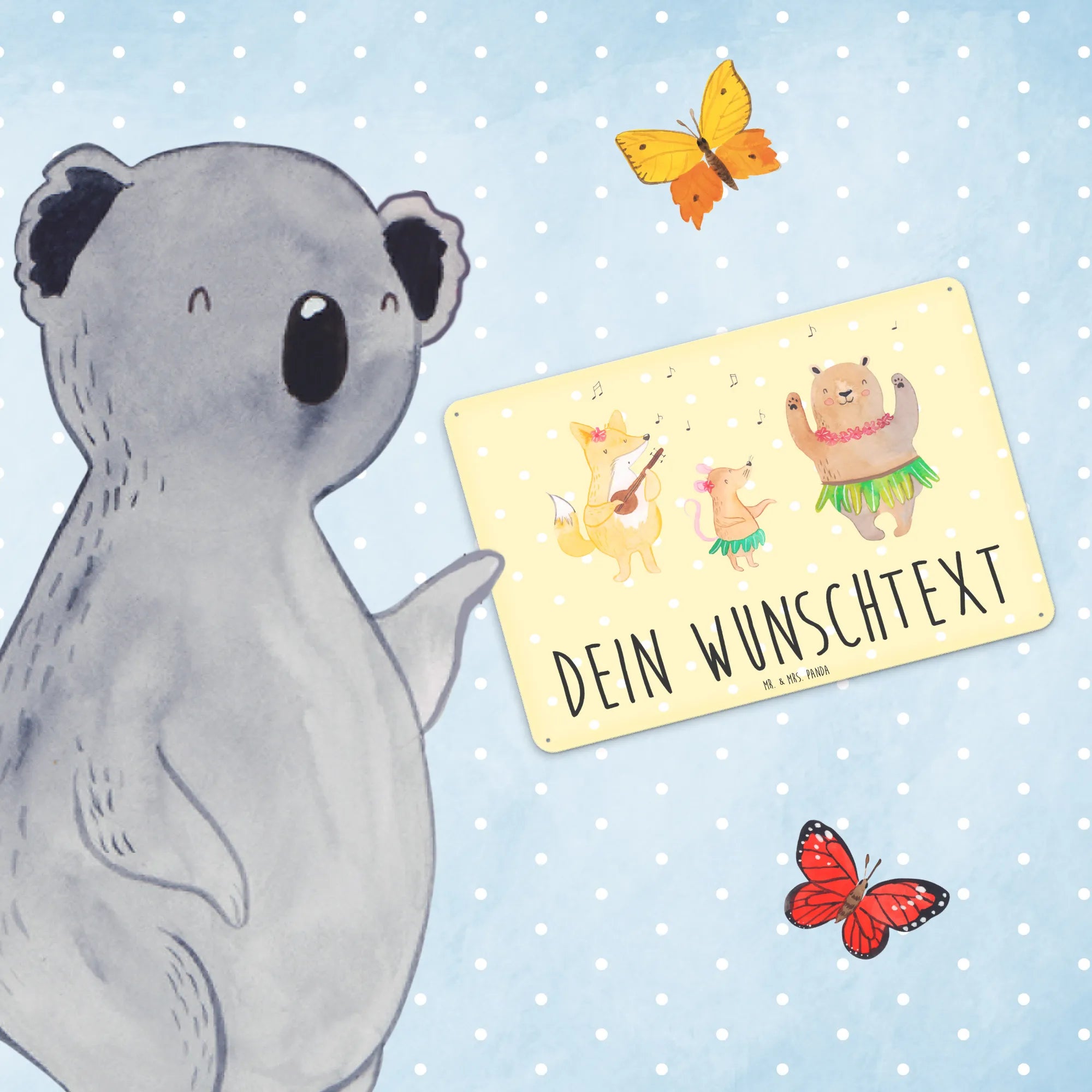 Das personalisierte Blechschild "Waldtiere Aloha" von Mr. & Mrs. Panda ist das perfekte Geschenk für alle, die die Natur und fröhliche Tiere lieben! 🌲 Mit dem zauberhaften Motiv von tanzenden Waldtieren in Hula-Röcken zaubert dieses Schild sofort ein Lächeln auf dein Gesicht und versetzt dich in Urlaubsstimmung! 🐻🐰✨